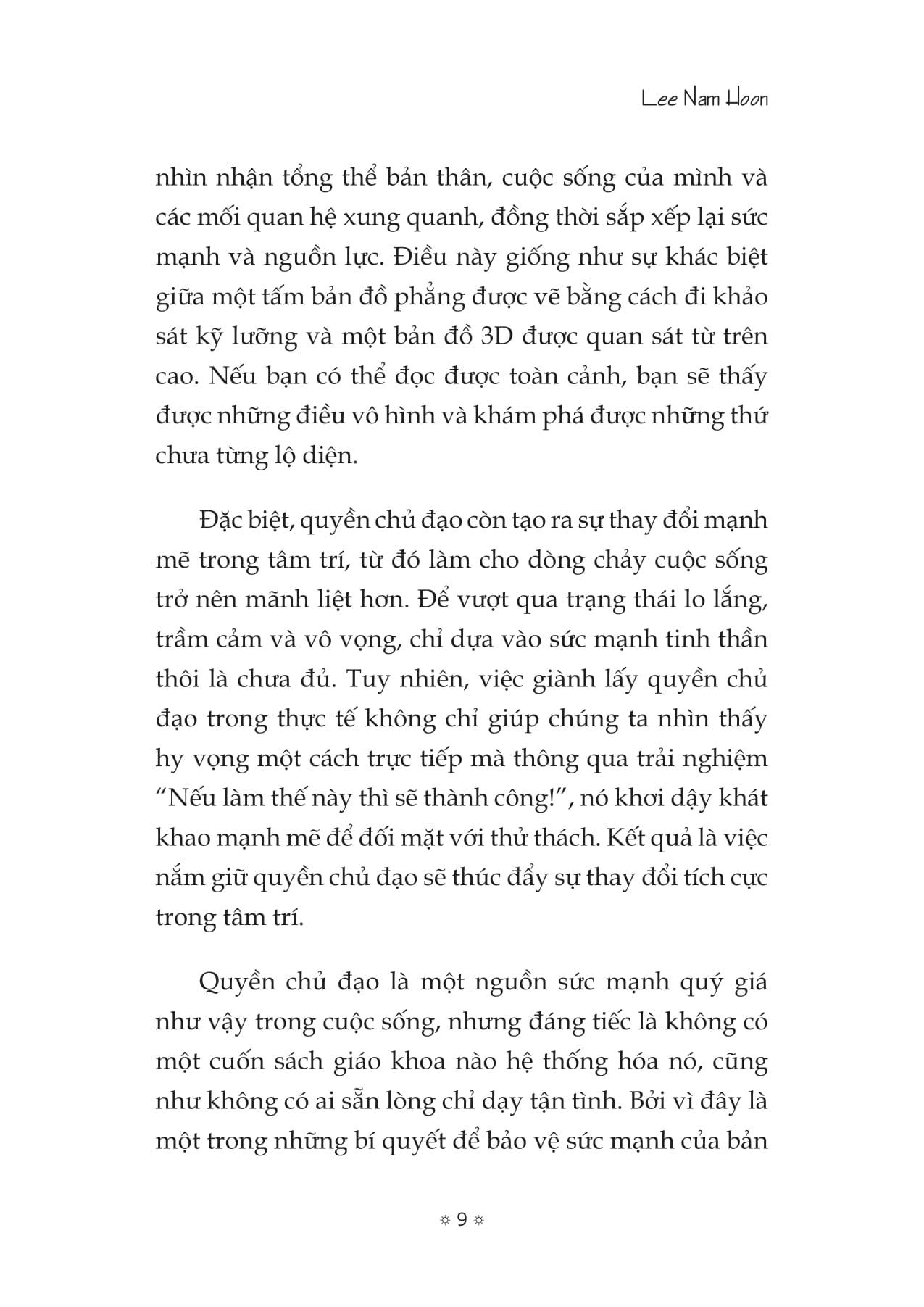 Khi bị cuốn vào cảm xúc tiêu cực, những mối quan hệ phức tạp hay công việc áp lực, ta dần đánh mất chính m.ình và quyền làm chủ cuộc sống. Nhưng may mắn thay, quyền chủ động, luồng sức mạnh tiềm tàng trong ta lại không phụ thuộc vào địa vị hay quyền lực – bất kỳ ai cũng có thể giành lấy và giữ vững nó.