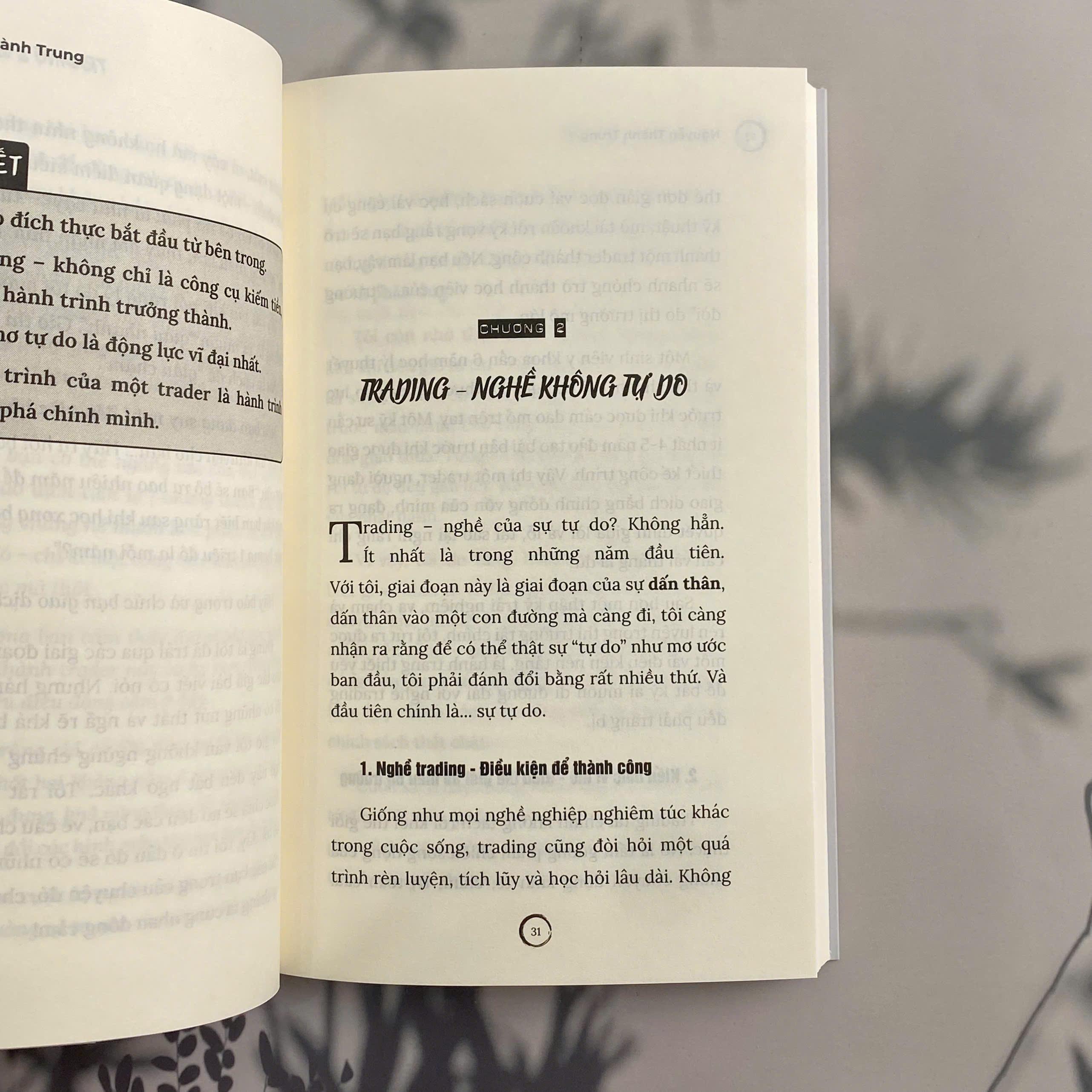 Tác giả viết từ trải nghiệm cá nhân: từ những ngày sống trong căn phòng chật chội, thức trắng vì thị trường, đến những biến cố khiến anh mất hết tiền bạc, danh tiếng, niềm tin. Nhưng thay vì từ bỏ, anh chọn quay vào bên trong, chiêm nghiệm, và bắt đầu một hành trình tâm linh, nơi trading trở thành phương tiện tu tập, không khác gì thiền định hay chánh niệm.