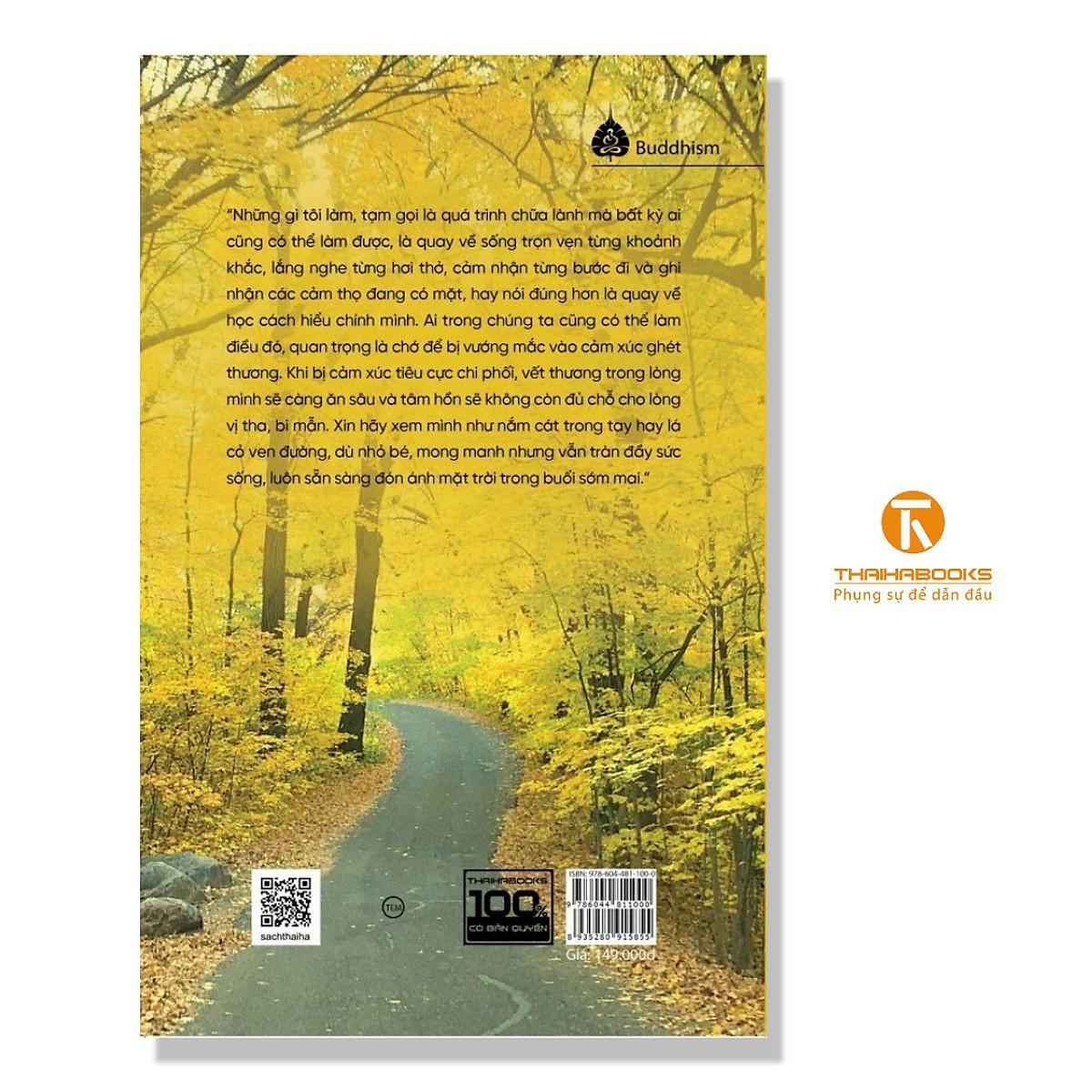 [ThaiHaBooks] “Những gì tôi làm, tạm gọi là quá trình chữa lành mà bất kỳ ai cũng có thể làm được, là quay về sống trọn vẹn từng khoảnh khắc, lắng nghe từng hơi thở, cảm nhận từng bước đi và ghi nhận các cảm thọ đang có mặt, hay nói đúng hơn là quay về học cách hiểu chính mình. Ai trong chúng ta cũng có thể làm điều đó, quan trọng là chớ để bị vướng mắc vào cảm xúc ghét thương. Khi bị cảm xúc tiêu cực chi phối, vết thương trong lòng mình sẽ càng ăn sâu và tâm hồn sẽ không còn đủ chỗ cho lòng vị tha, bi mẫn. Xin hãy xem mình như nắm cát trong tay hay lá cỏ ven đường, dù nhỏ bé, mong manh nhưng vẫn tràn đầy sức sống, luôn sẵn sàng đón ánh mặt trời trong buổi sớm mai.”