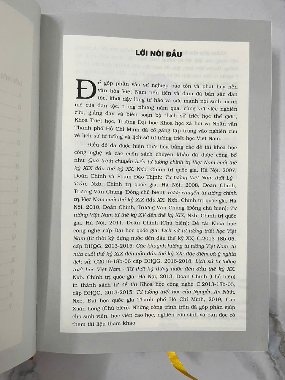 Để góp phần vào sự nghiệp bảo tồn và phát huy nền văn hóa Việt Nam tiến tiến và đậm đà bản sắc dân tộc, khơi dậy lòng tự hào và sức mạnh nội sinh mạnh mẽ của dân tộc, trong những năm qua, cùng với việc nghiên cứu, giảng dạy và biên soạn bộ “Lịch sử triết học thế giới", Khoa Triết học, Trường Đại học Khoa học xã hội và Nhân văn Thành phố Hồ Chí Minh đã cố gắng tập trung vào nghiên cứu về lịch sử tư tưởng và lịch sử tư tưởng triết học Việt Nam.