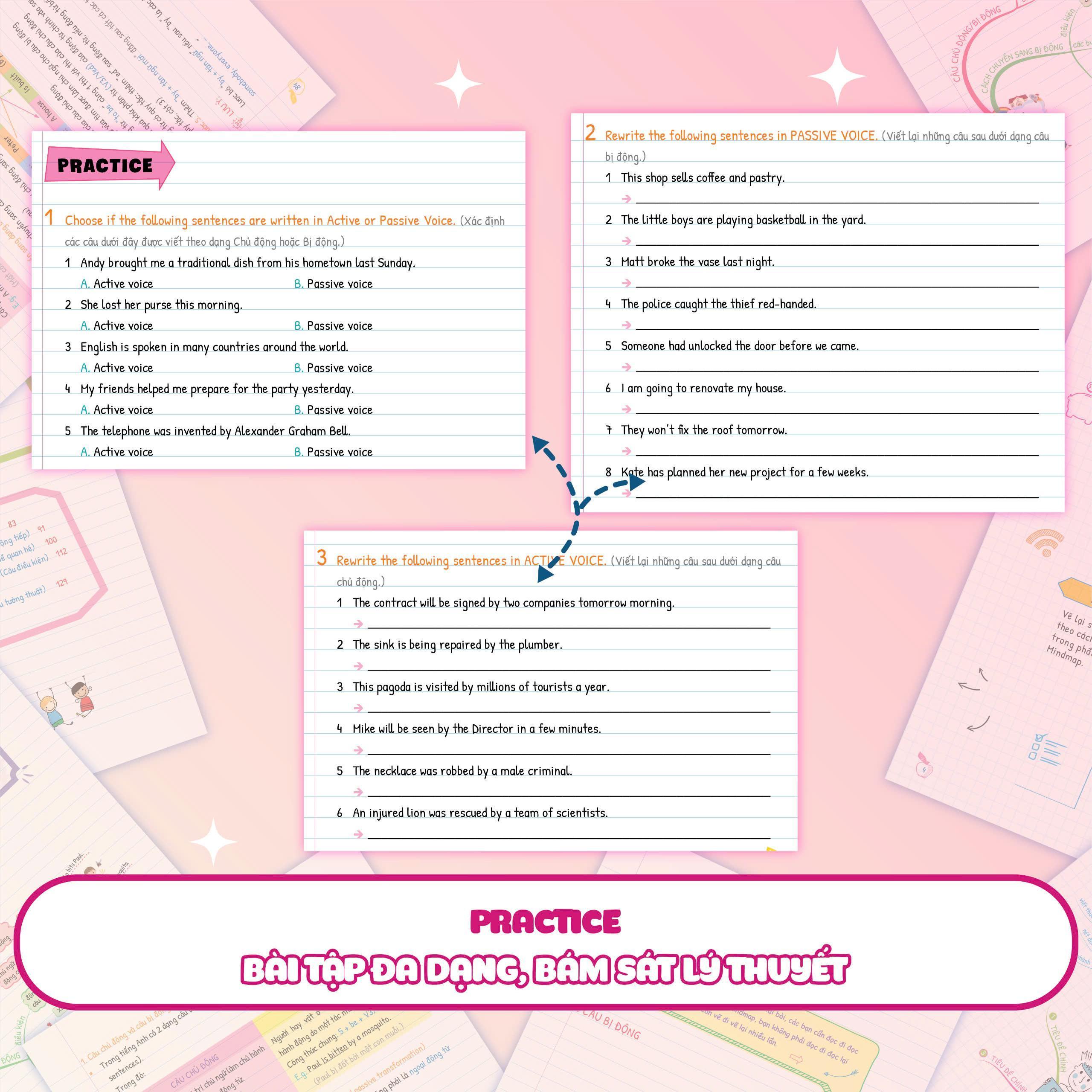 Phần lý thuyết ngắn gọn, giúp các em học ngữ pháp nền tảng qua Mindmap, có kèm diễn giải lý thuyết và ví dụ cụ thể