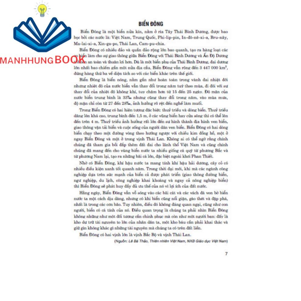 Trong sách có sử dụng các tư liệu được khai thác từ sách, báo, tạp chí, báo cáo khoa học và bài viết trên Internet; được chọn lọc, hệ thống hoá để phù hợp với nội dung chương trình Địa lí lớp 8. Các tác giả xin được gửi lời xin phép và tri ân chân thành đến các đơn vị và cá nhân là tác giả của các tư liệu trên.