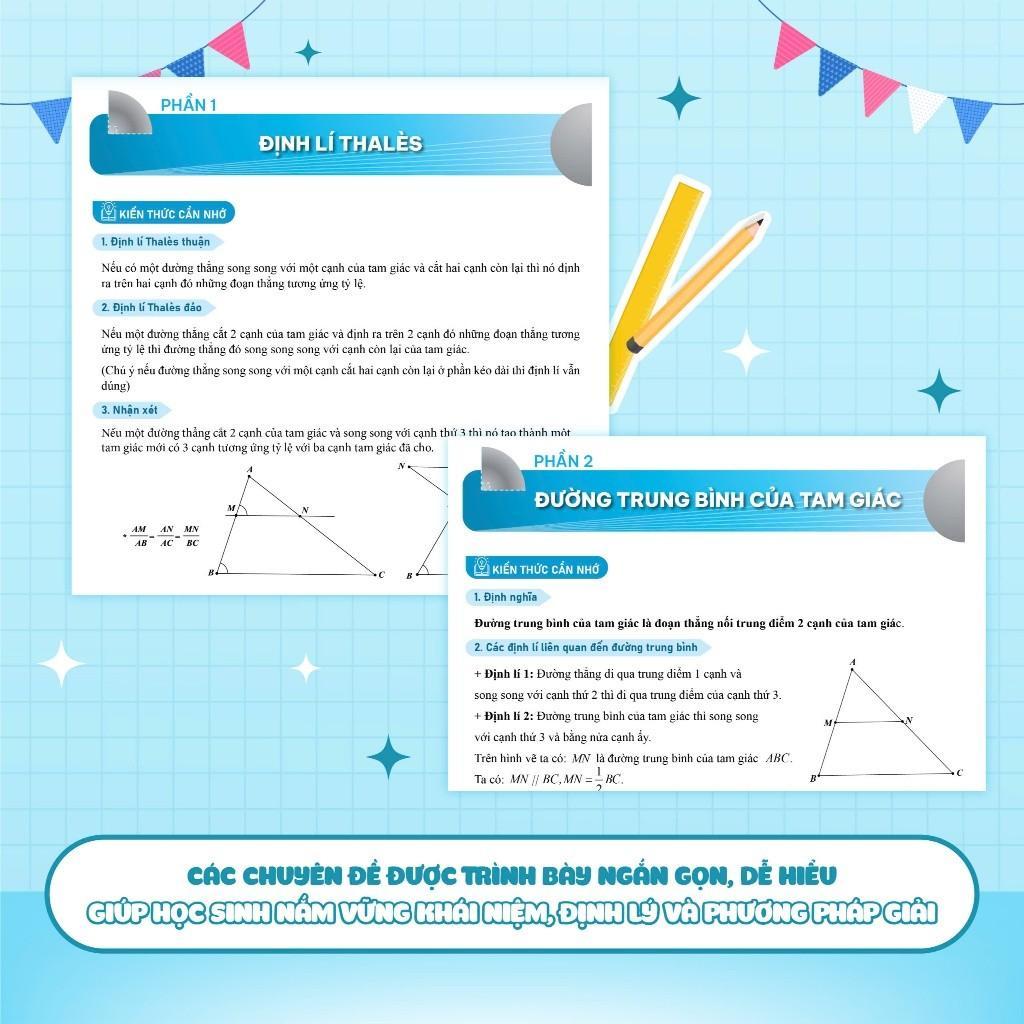 - Kiến thức trọng tâm theo từng chuyên đề: Trình bày ngắn gọn, dễ hiểu, giúp học sinh nắm vững các khái niệm, định lý và phương pháp giải cơ bản.