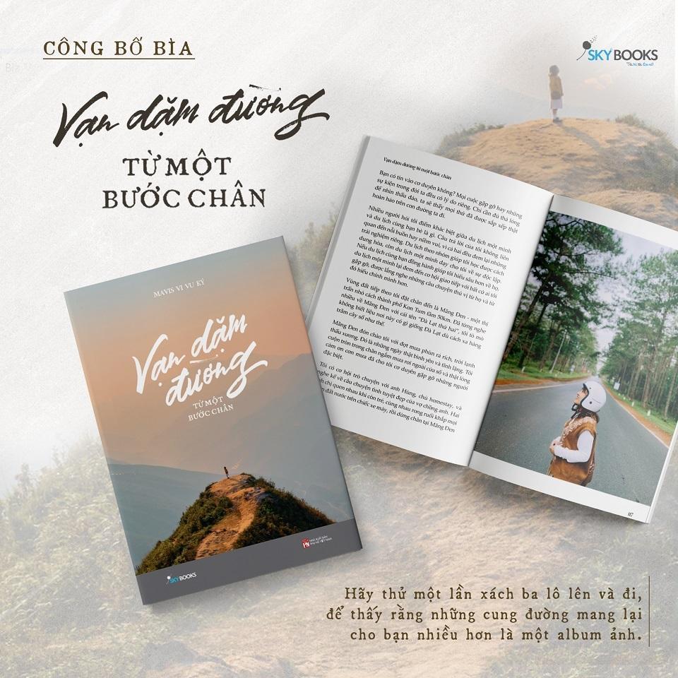 Giới thiệu sách: VẠN DẶM ĐƯỜNG TỪ MỘT BƯỚC CHÂN VẠN DẶM ĐƯỜNG TỪ MỘT BƯỚC CHÂN - HÀNH TRÌNH 6 NĂM ĐI KHẮP 63 TỈNH THÀNH VIỆT NAM “Vạn dặm đường từ một bước chân” là hành trình của Mavis Vi Vu Ký khám phá 63 tỉnh thành Việt Nam trong 6 năm. Bạn có thể tìm thấy trong 248 trang sách một Mavis ngây ngô, háo hức trước những điều mới lạ, nhưng theo dòng thời gian, trải qua nhiều sự kiện cũng như thử thách dần trở nên độc lập và mạnh mẽ hơn. Từng vùng đất trên đất nước hình chữ S hiện lên rất thực và đời dưới góc nhìn của Mavis Vi Vu Ký. Một Pleiku sống động với hàng thông là biển hồ chè rộng lớn, những luống chè xanh ngát nối đuôi nhau trải dài bất tận cùng đập Tân Sơn, ngắm nhìn mặt nước xanh phẳng lặng, bình yên; Hoàng hôn Tà Xùa cũng rất đẹp, lý tưởng bậc nhất có lẽ là ngắm từ khu vực Đỉnh Gió hay Thái Nguyên với nhiều con thác đẹp như tranh với cảnh sắc yên bình và ngoạn mục. Và vô vàn cảnh sắc tươi đẹp khác của thiên nhiên Việt Nam. Trong hành trình khám phá thiên nhiên đất nước và thế giới nội tâm của chính mình, Mavis cũng có những chuyện dở khóc dở cười như da từng bị cháy nắng dưới nắng gió khắc nghiệt của miền biển; thủng săm xe giữa rừng ngay ở nơi có bảng “khu vực thường có voi rừng xuất hiện”; lạc vào những con đường vô cùng lạ lẫm; xích mích với bạn đồng hành, mỗi người chọn một hướng đi riêng… để từ đó cô có những đúc kết và trải lòng đầy cảm xúc trong “Vạn dặm đường từ một bước chân”. Không chỉ là một cuốn "cẩm nang du lịch" bình thường, “Vạn dặm đường từ một bước chân” còn là cuốn sách tiếp thêm động lực, truyền lửa đam mê xê dịch và sống hết mình trong mỗi bạn trẻ. “Thật ra điều người ta chinh phục không phải một cột mốc đá, mà là cả một cuộc hành trình. Trong hành trình đó, họ đã chinh phục được những giới hạn của bản thân, từ đó thấy được giới hạn là vô hạn.” Mong rằng khi gập lại những trang sách cuối cùng, bạn nhận ra chúng ta đều đang đi trên những chặng hành trình riêng biệt. Đôi khi kết quả không giống như xã hội kỳ vọng hay những gì bạn mong đợi ban đầu. Thế nhưng, hãy cứ thả lỏng và sống tốt mỗi ngày, rồi lộ trình của chúng ta đều sẽ rực rỡ theo cách độc đáo nhất!