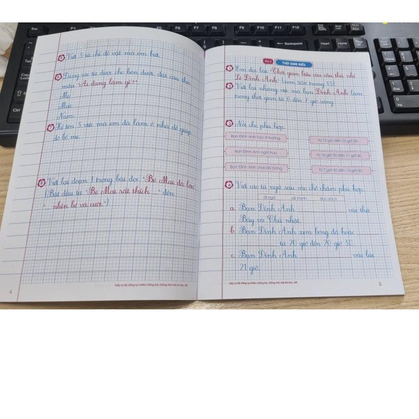GIỚI THIỆU SÁCH SÁCH - Vở ô li bài tập tiếng Việt lớp 2/1 (bám sát SGK Chân trời sáng tạo) Cuốn “Vở ô li Bài tập Tiếng Việt lớp 2” được biên soạn dựa theo sách giáo khoa Tiếng Việt 2 nhằm mục đích giúp các em nắm vững kiến thức lớp 2, đồng thời rèn luyện kĩ năng trình bày bài trong vở ô li. Cuốn sách gồm 2 tập, Tập 1 và Tập 2. Mỗi tập bao gồm nhiều dạng bài tập khác nhau với nội dung phù hợp với từng chủ đề bài học trong sách như đọc hiểu bài đọc, viết câu có từ cho sẵn, nối câu, điền vào chỗ chấm, đặt câu theo mẫu, viết lại đoạn văn,… Thông qua việc làm các dạng bài tập này, các em sẽ dần dần củng cố kiến thức đã học và nâng cao khả năng tư duy để từ đó ứng dụng vào việc làm các bài tập môn Tiếng Việt một cách linh hoạt và chuẩn xác. S ách có bố cục chặt chẽ và nhất quán, các bài tập lại được trình bày rõ ràng trên giấy ô li kèm theo đáp án hướng dẫn cho từng bài tập (ở cuối sách) nên chắc chắn sẽ rất thuận tiện cho các em học sinh vừa tự rèn luyện kĩ năng viết trên giấy ô li vừa phát triển kĩ năng làm bài tập. Sách không chỉ là tài liệu học tập hữu ích dành cho học sinh, mà còn là tài liệu cho quý thầy cô và quý phụ huynh tham khảo trong việc hướng dẫn, giúp đỡ các em làm bài một cách hiệu quả. Trong quá trình biên soạn, mặc dù rất cố gắng, song khó tránh khỏi thiếu sót. Chúng tôi rất mong nhận được những góp ý để nâng cao chất lượng sách trong những lần in sau. THÔNG TIN CHI TIẾT