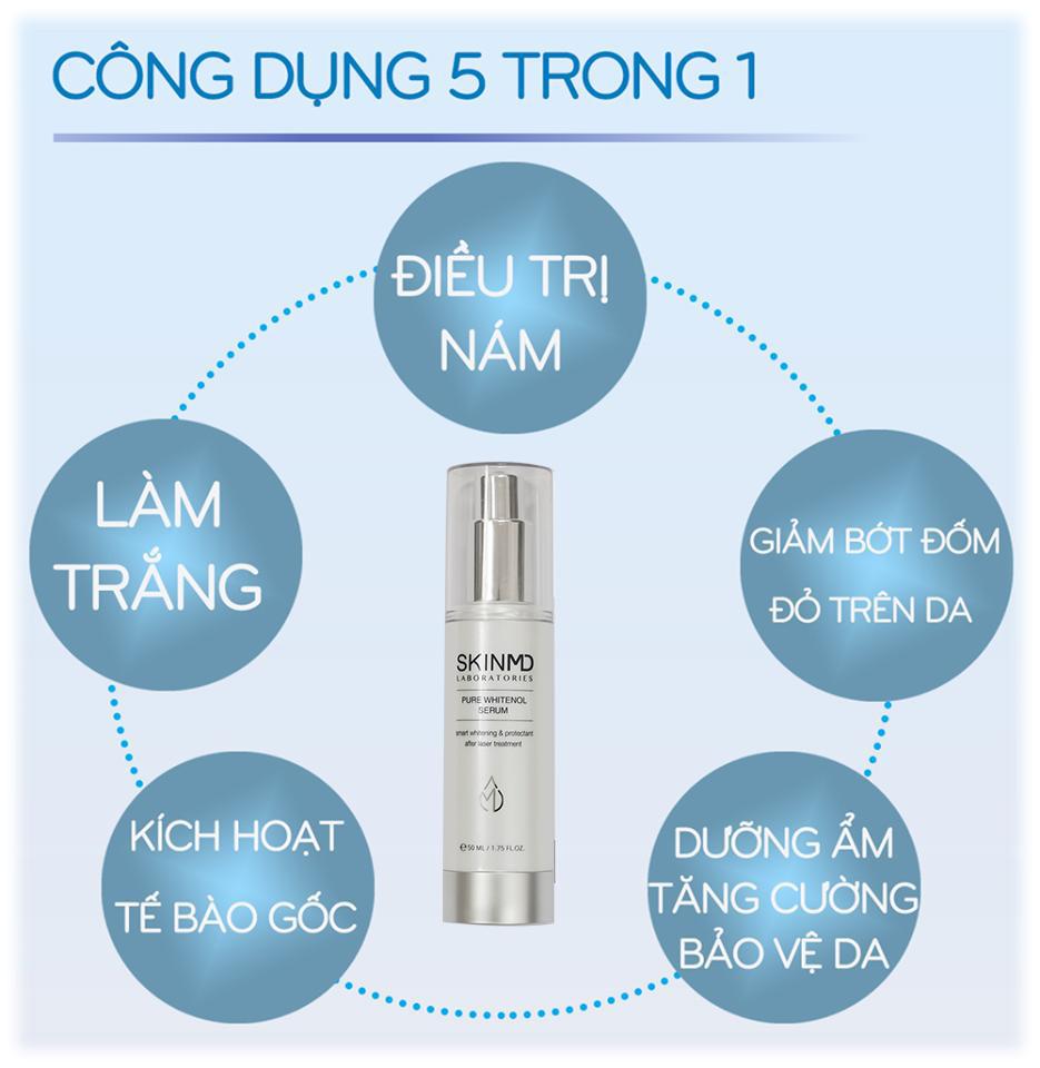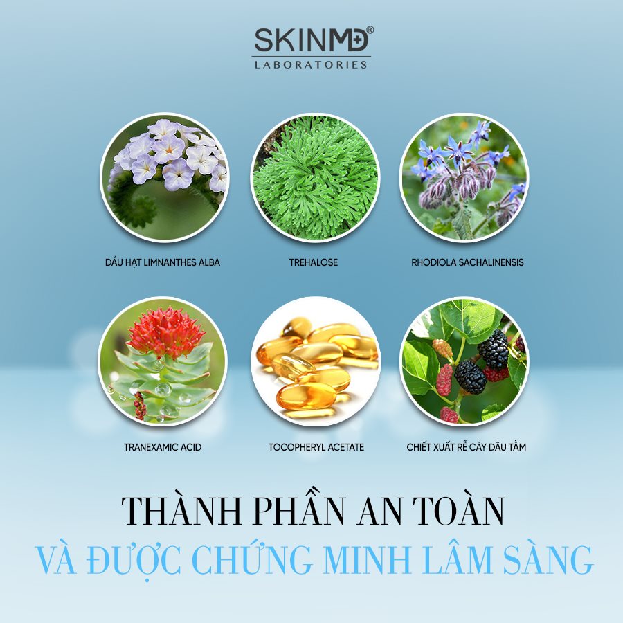 Serum hỗ trợ điều trị nám - tàn nhang: - Thành phần: Aqua, Aloe Barbadensis Leaf Juice, Glycerin, Triethanolamine (1,0 %), Phellodendron Amurense Bark Extract, Carbomer, Tocopheryl Acetate, Hydrolyzed Collagen, Boric Acid (0,5 %), Salicylic
