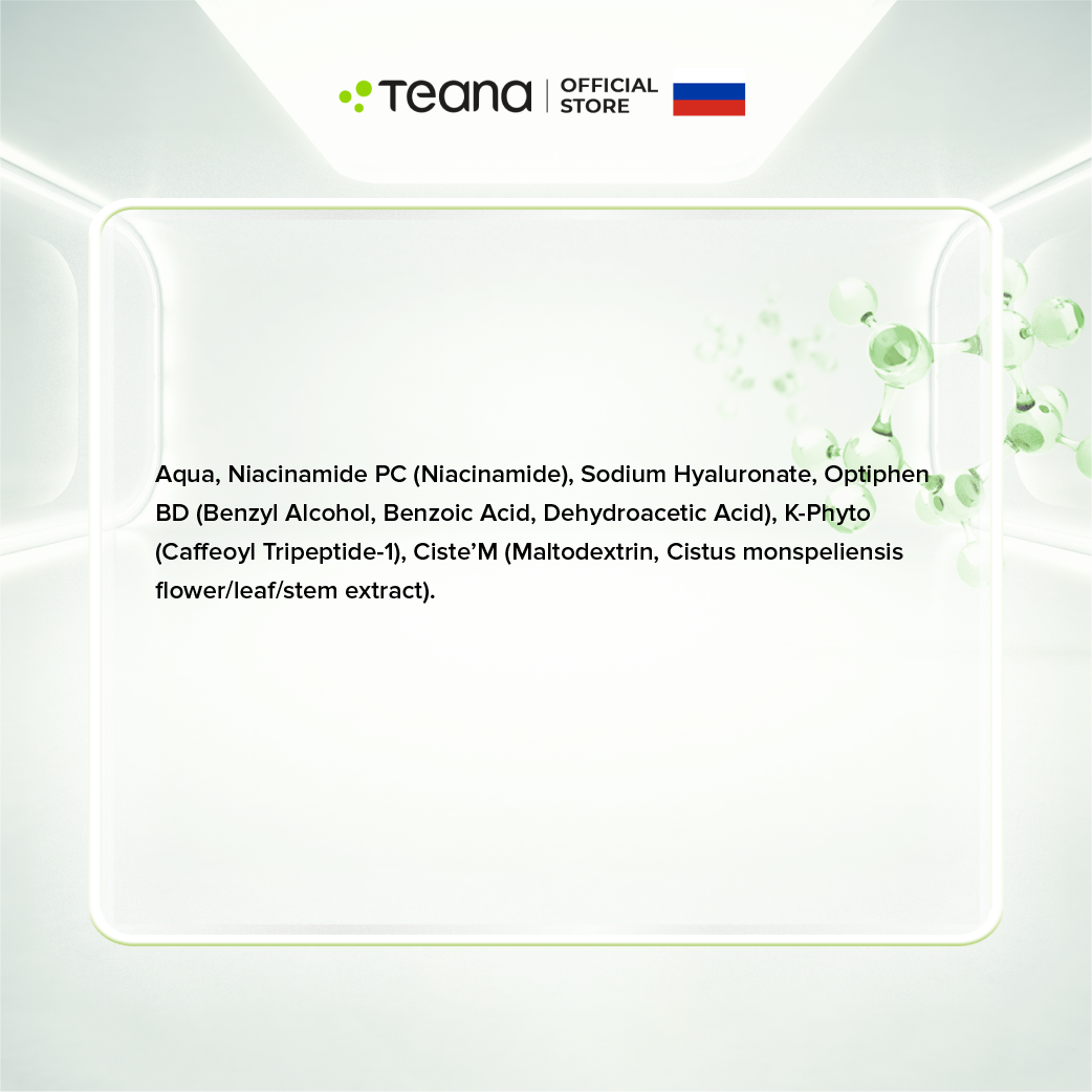 • Thứ tự sử dụng: Cleanser —> toner –> serum –> mask/booster/cream.   Bảng thành phần:  Aqua, Niacinamide PC (Niacinamide), Sodium Hyaluronate, Optiphen BD (Benzyl Alcohol, Benzoic Acid, Dehydroacetic Acid), K-Phyto (Caffeoyl Tripeptide-1), Ciste’M (Maltodextrin, Cistus monspeliensis flower/leaf/stem extract).