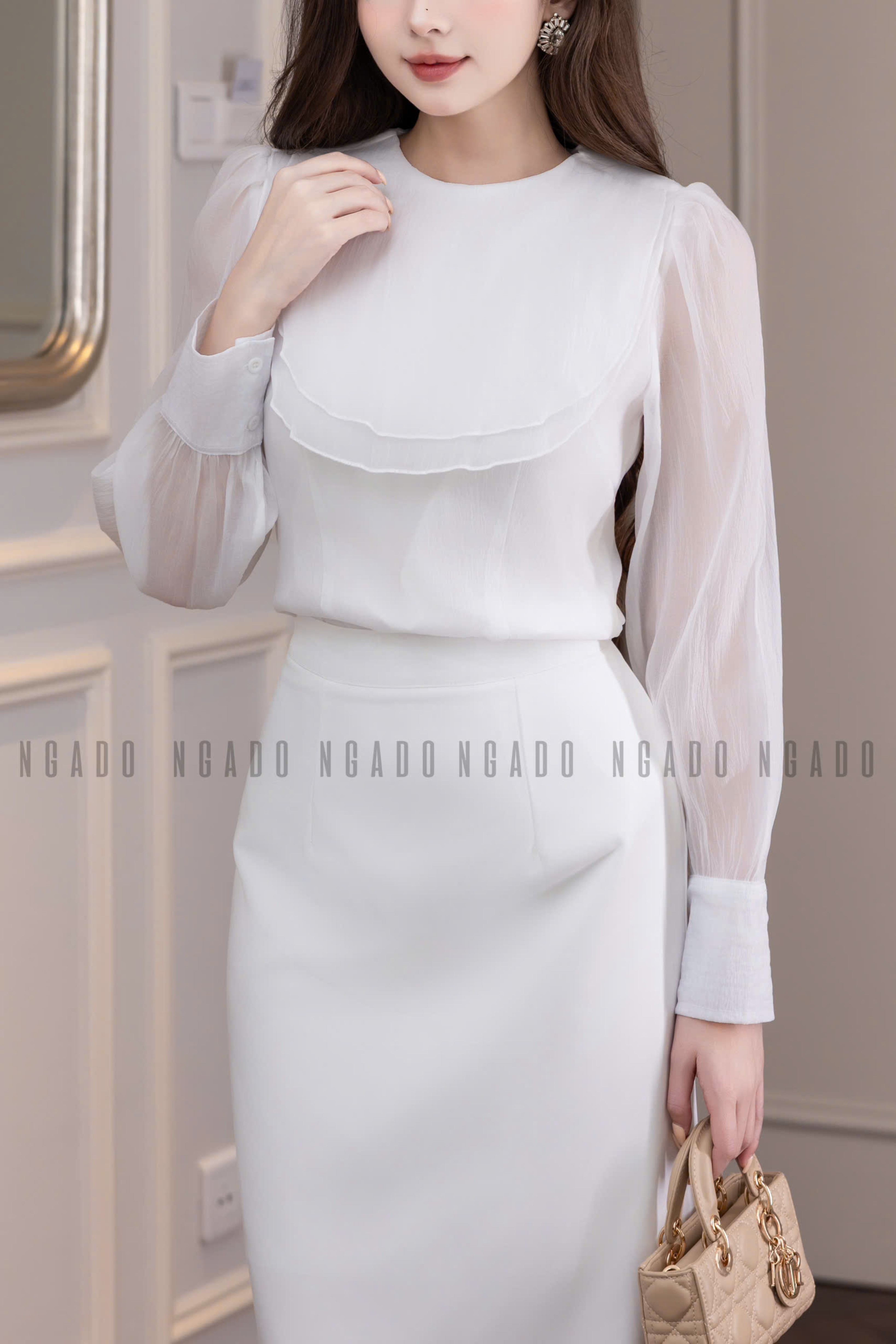 ✨Set áo váy voan trắng bút chì NGADO , set áo kèm váy , set áo váy Nữ