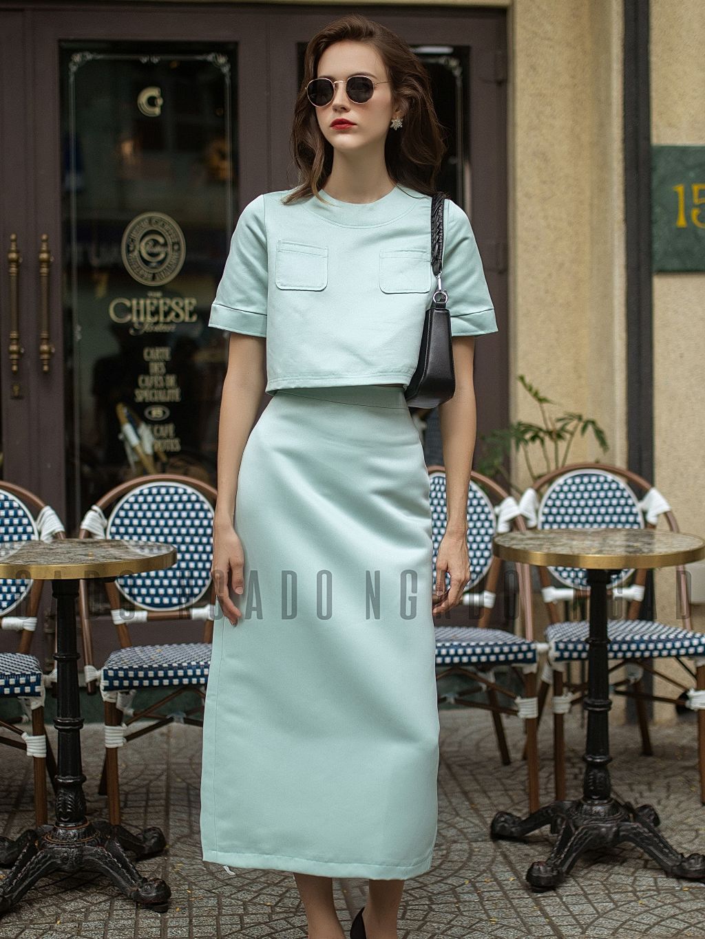✨Set áo váy xanh mint NGADO , váy nữ , set đồ nữ , Set áo chân váy