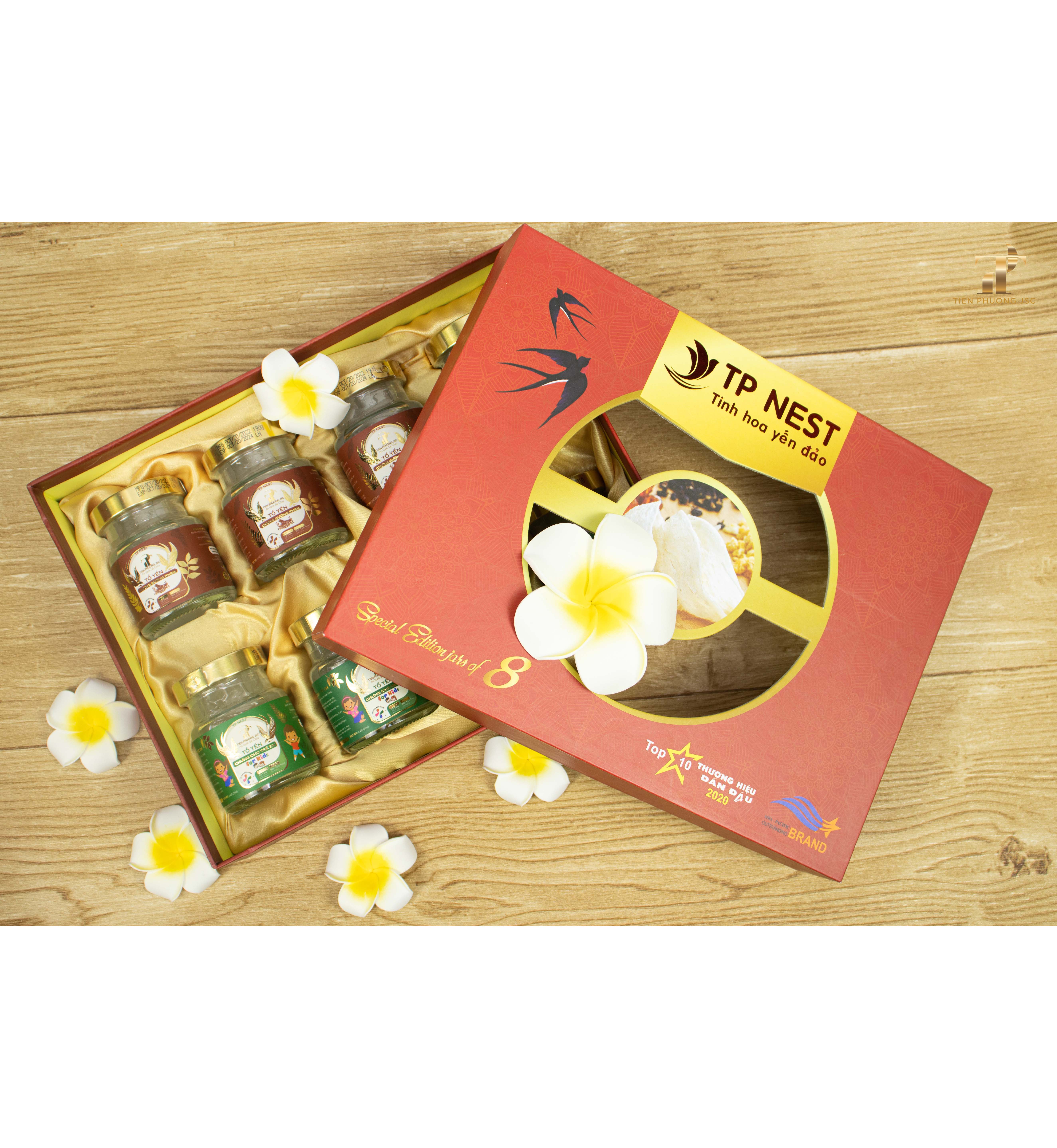 - Túi đựng cao cấp Mô tả: Tổ yến chưng đường phèn: - Với thành phần 25% tổ yến, đường phèn, nước. - Kết hợp trong tổ yến phần lớn là 3 dưỡng chất Collagen, Protein và Vitamin có khả năng chống lão hóa da, làm da mịn màn, giữ mãi sự trẻ trung và ngăn ngừa nếp nhăn. Điều này giúp cho cả nam lẫn nữ trong trẻ và hấp dẫn hơn. Ngoài ra cả nam và nữ đều được cải thiện hiệu quả các cơ quan nội tạng. Tổ yến có khả năng cải thiện chức năng của thận phổi và tim. Nếu bạn là người bận rộn thì có thể sử dụng tổ yến nguyên chất chưng sẵn, rất tốt cho cơ thể. Tổ yến chưng cho trẻ em: - Với thành phần 25% tổ yến, đường phèn, nước. - Đây là một loại thực phẩm hết sức bổ dưỡng dành cho trẻ em. Bằng phương pháp cổ truyền kết hợp với công nghệ sản xuất hiện đại của Châu Âu (làm nhuyễn sợi yến giúp trẻ em dễ tiêu hóa) - đã tạo ra yến tổ chưng TP NEST for Kid giữ nguyên được hết tinh hoa của yến đảo, giúp cải thiện tình trạng suy dinh dưỡng, biếng ăn ở trẻ nhỏ, tăng sức đề kháng, rất tiện lợi và sang trọng. Ba mẹ sẽ tiết kiệm được nhiều thời gian chăm sóc cho con yêu. - Hạn sử dụng: 24 tháng kể từ ngày sản xuất