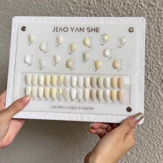 Set Sơn Gel Jiao Yan She Trắng Kem 15 Màu Làm Nail, Sơn Gel Trắng Nước Gạo, Sữa Chua, Thạch Đục Bền Màu, Tặng Bảng Màu Mica Cao Cấp Nữ Women - Sơn móng tay