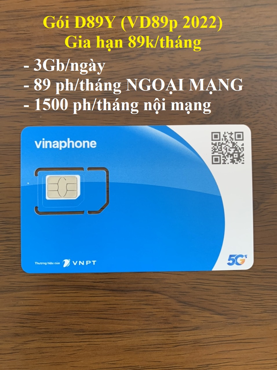 Sim 4G Vinaphone VD89 60GB/Tháng trọn gói 1 năm không nạp tiền: Thông tin khuyến mãi: - Gọi miễn phí tất cả cuộc gọi nội mạng Vinaphone dưới 20 phút (tương đương tối đa 43.000
