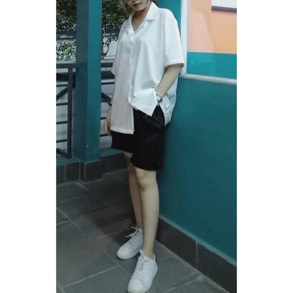 Áo sơ mi tay ngắn nam nữ form rộng sơ mi cổ vest unisex tay lỡ, chất vải lụa mịn chống nhăn