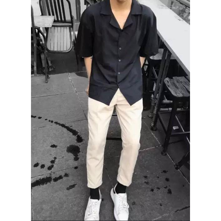 Áo sơ mi tay ngắn nam nữ form rộng, sơ mi cổ vest unisex Hàn Quốc, chất vải lụa dãn