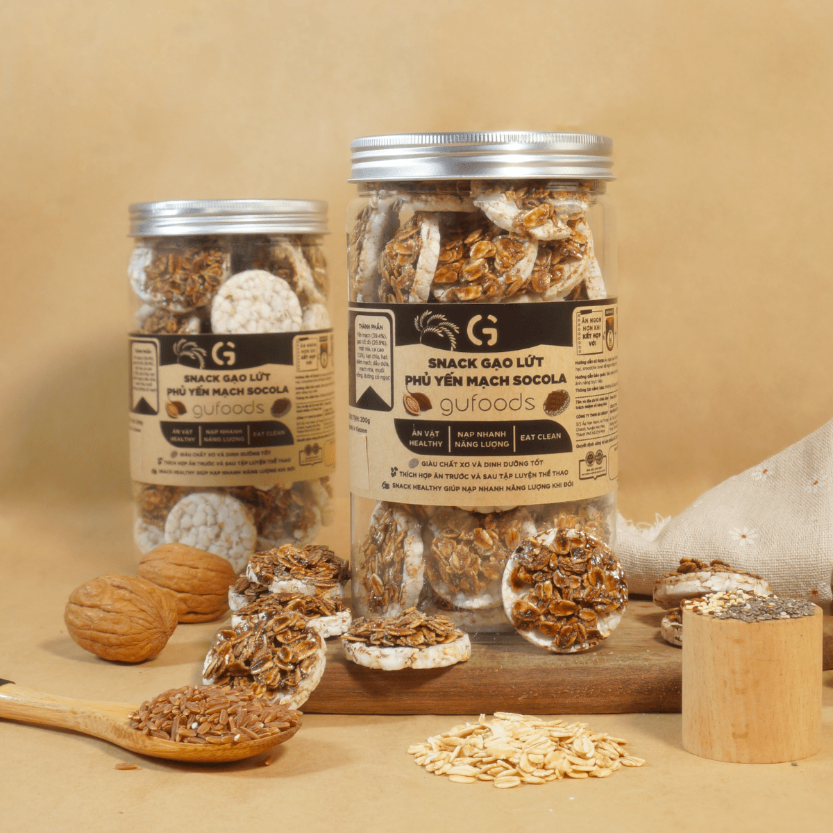 - Snack healthy nạp năng lượng cho cơ thể khi uể oải Vào những buổi giữa giờ, cơ thể chúng ta hay “lên tiếng” vì năng lượng đã tiêu hao cho học tập hay làm việc. Thay vì order trà sữa hay ăn vặt những món ăn nhiều calories, snack gạo lứt phủ yến mạch socola GUfoods là món snack healthy giúp bạn thương vừa ăn ngon miệng, vừa nạp lại năng lượng để tiếp tục học tập, làm việc mà không lo cơ thể dư thừa calories đó.