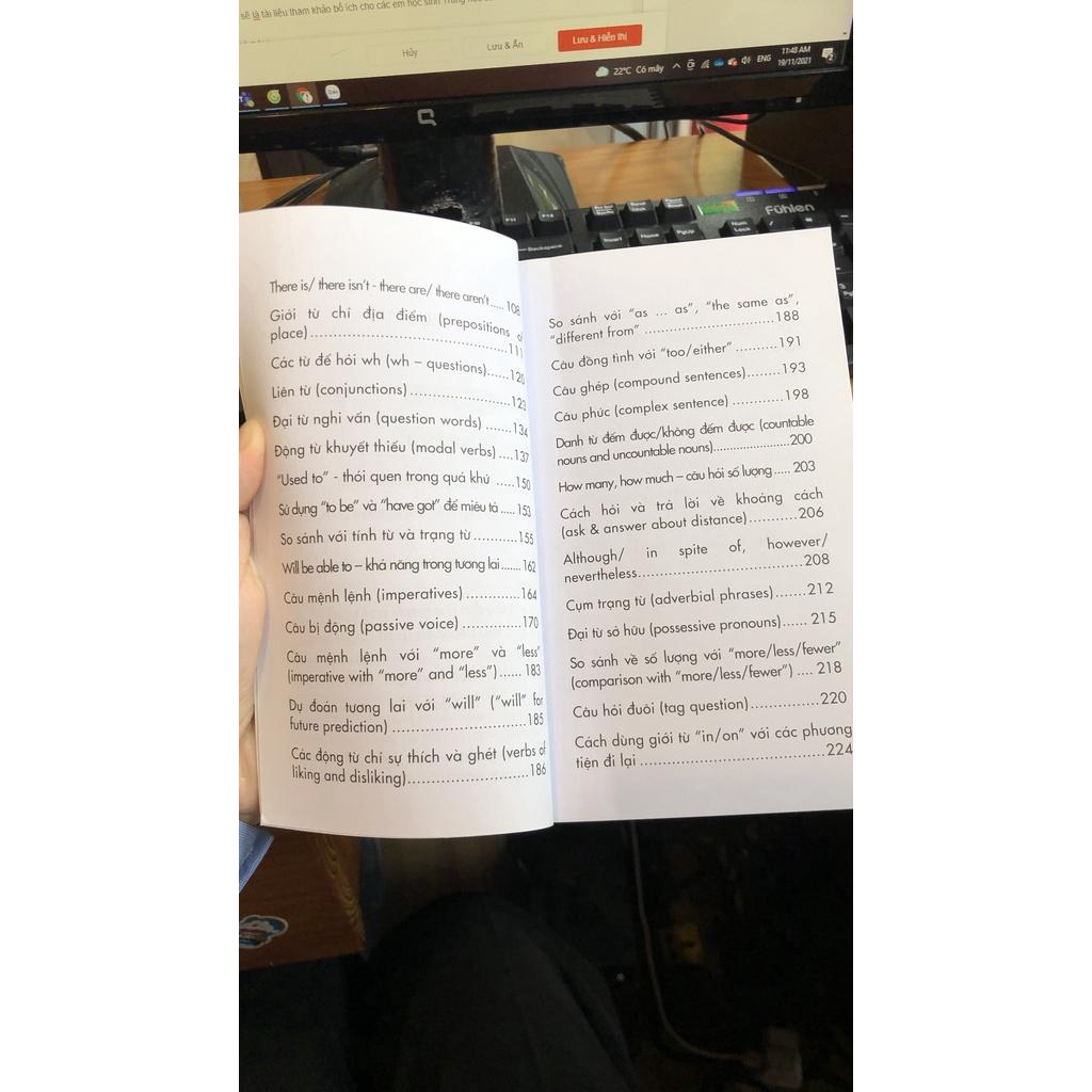 Cuốn sách được chia thành các phần sau: Từ vựng và ngữ pháp. Trong mỗi nội dung kiến thức được trình bày đều có ví dụ minh hoạ cụ thể để các em học sinh hiểu rõ và nắm bắt sâu hơn các kiến thức căn bản trong chương trình.