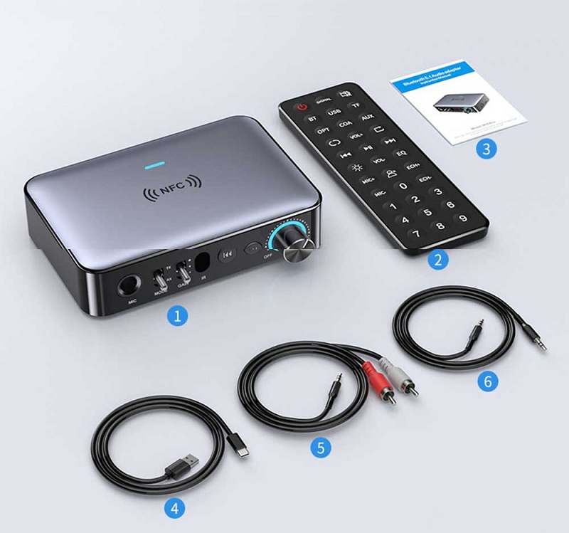 B Bộ Thu Phát Âm Thanh 6 Trong 1 Bluetooth 5.1 - Chiến Binh Giải Trí Mọi Âm Thanh Bạn đang tìm kiếm một thiết bị âm thanh đa năng, khuếch đại mọi giai điệu