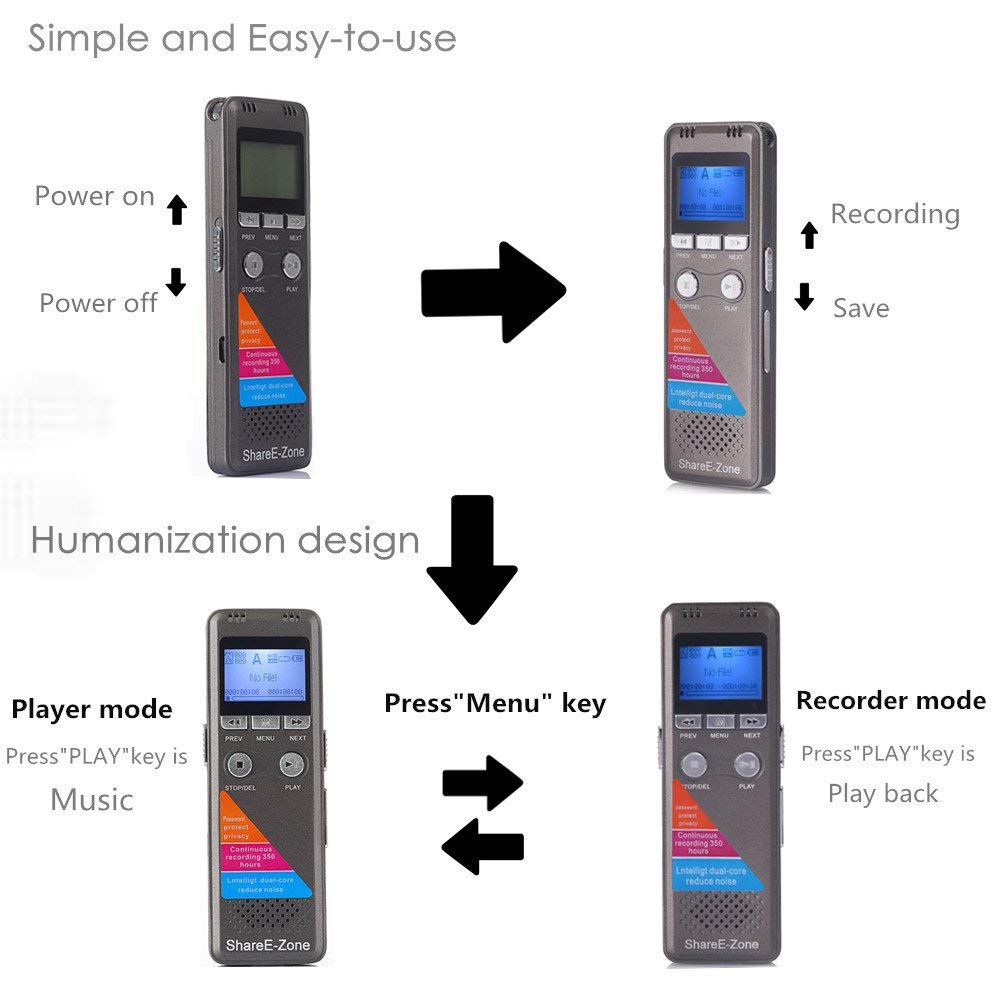 Máy ghi âm kỹ thuật số đơn giản đầy phong cách này có thể được mang đi bất cứ đâu để ghi lại âm thanh trong các bài giảng, cuộc họp, cuộc trò chuyện và