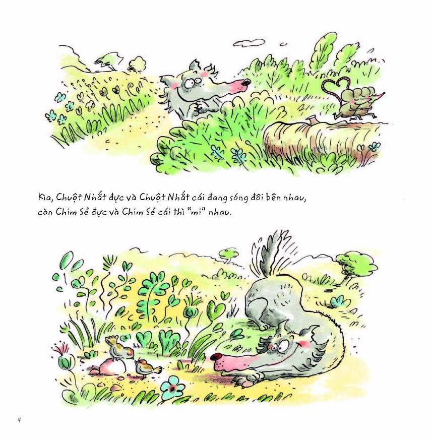 Kìa, Chuột Nhắt đực và Chuột Nhắt cái đang sóng đôi bên nhau, còn Chim Sẻ đực và Chim Sẻ cái thì “mi”