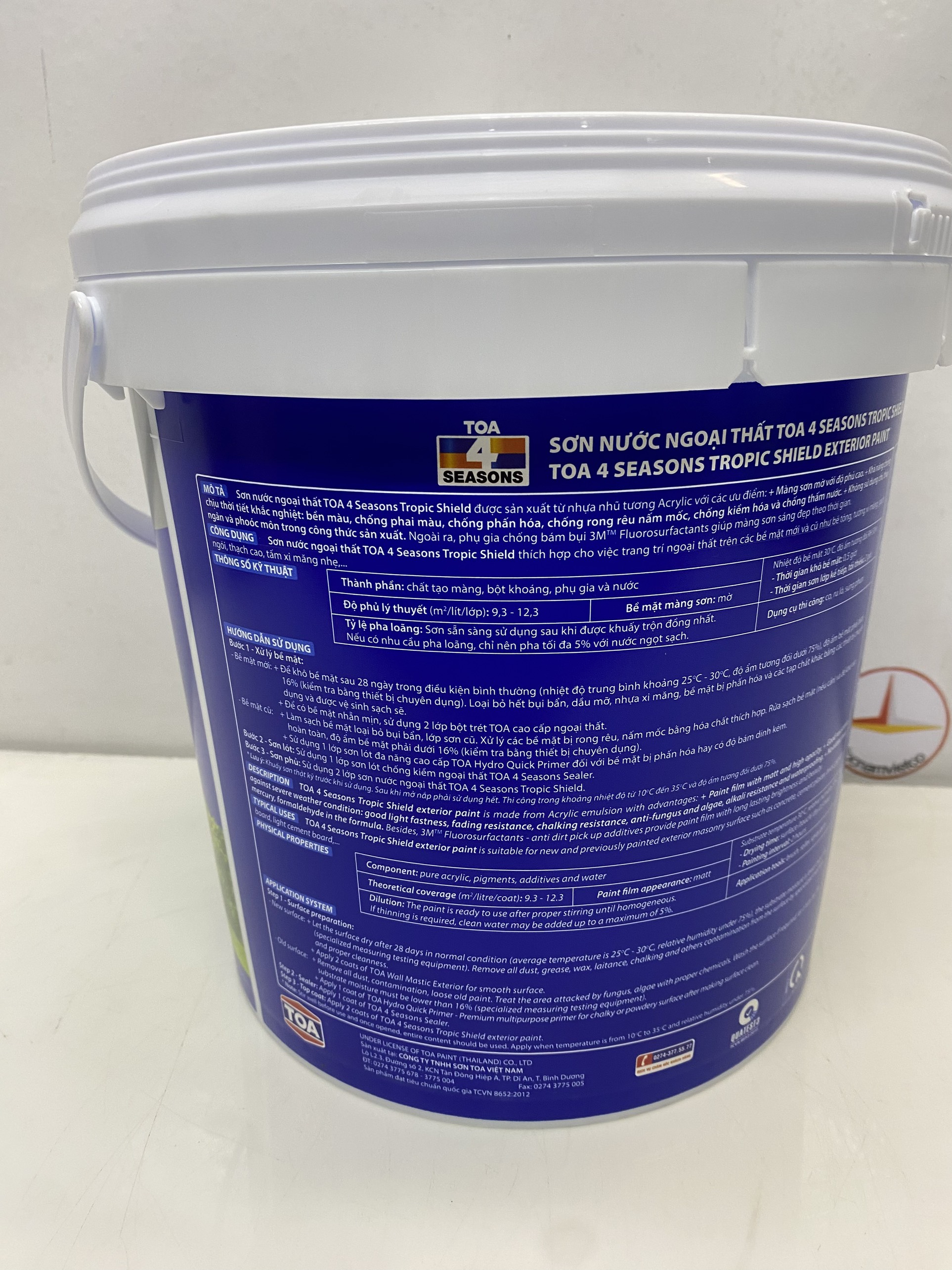 Sơn nước ngoại thất TOA 4 Seasons Tropic Shield là sơn nước dành cho ngoài trời, được sản xuất từ nhựa nhũ tương Acrylic với các ưu điểm: