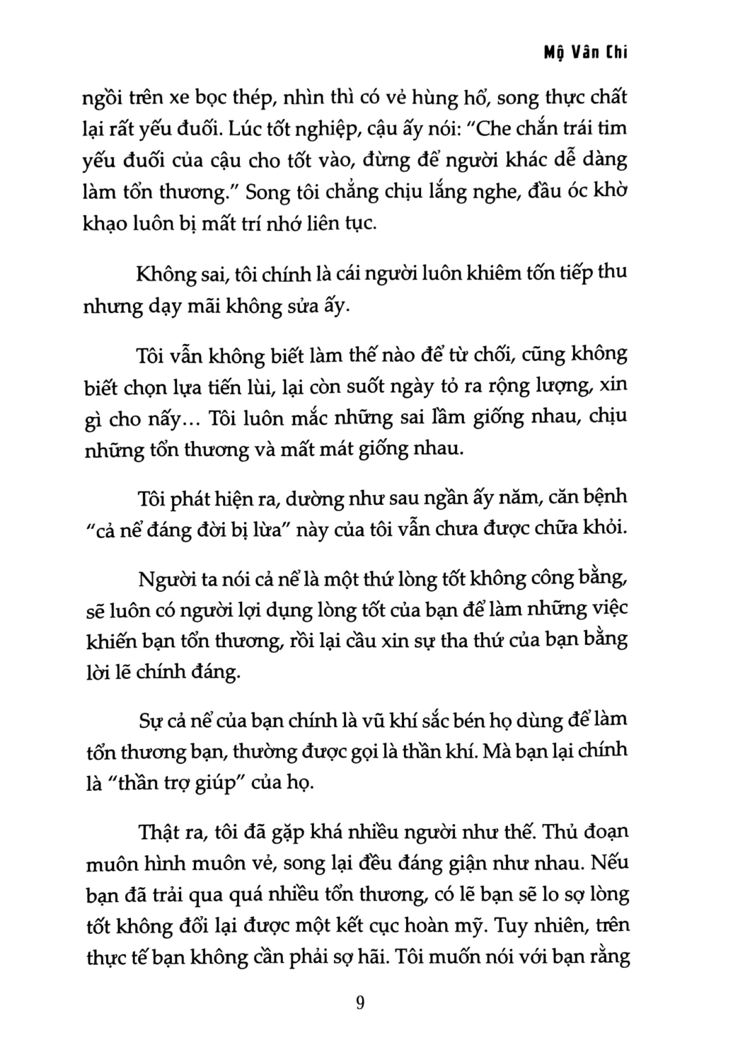 Sống Cả Nể, Đời Không Nể GIỚI THIỆU SÁCH: Cuốn sách Sống Cả Nể, Đời Không Nể của tác giả Mộ Vân Chi là một hành trình khám phá sâu sắc vào tâm lý con người và các mối quan hệ xã hội. Tác phẩm nhấn mạnh đến vấn đề căn bệnh "cả nể" - một khía cạnh ít được chú ý nhưng lại gây ra nhiều rắc rối trong cuộc sống hàng ngày. Với lối viết truyền cảm và sâu sắc, Mô Vân Chi mô tả rằng, sự cả nể không chỉ đơn giản là một bản tính tốt bụng, mà thực chất là sự thiếu tự tin và sự lo lắng về việc bị từ chối của bản thân. Từ đó, cuốn sách giúp độc giả nhận thức được những hậu quả tiêu cực của việc cả nể, từ sự mất đi sự tự trọng đến mối quan hệ mập mờ và thiếu thật lòng. Tác giả không chỉ dừng lại ở việc phân tích vấn đề, mà còn đưa ra những giải pháp cụ thể để giải quyết tình trạng này. Bằng cách khuyến khích độc giả tập trung vào sự thấu hiểu và sự thẳng thắn trong giao tiếp, cuốn sách hướng đến việc xây dựng những mối quan hệ chân thành và bền vững. Những lời khuyên từ Sống Cả Nể, Đời Không Nể không chỉ đơn thuần là lý thuyết mà là những hành trang thiết thực để mọi người áp dụng trong cuộc sống hàng ngày, từ gia đình đến công việc và các mối quan hệ xã hội. Cuối cùng, tác phẩm khẳng định rằng, sự thấu hiểu và sự thẳng thắn là chìa khóa để vượt qua căn bệnh "cả nể", giúp con người tự tin và có thể đối mặt với mọi tình huống một cách chủ động. Sống Cả Nể, Đời Không Nể không chỉ là một cuốn sách hướng dẫn cách sống mà là một tài liệu quý giá về nghệ thuật xây dựng mối quan hệ tốt đẹp và sự tự trọng trong từng lời nói và hành động của bạn.