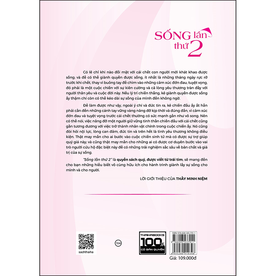 “Sống lần thứ hai” là cuốn sách cần phải đọc cho không chỉ những người đang thấy mình mắc kẹt với một căn bệnh không thuốc chữa và đang đi rất nhanh về phía cái chết. Cuốn sách đáng đọc với cả những người vẫn còn đang sống, nhưng thực ra đang mắc kẹt với chính mình và đã “chết” từ rất lâu, chỉ tồn tại và đợi đến ngày được chôn! Vì lẽ đó, “Sống lần thứ hai” là lời nhắc nhở chúng ta sống sao cho trọn vẹn trong kiếp người ngắn ngủi này.
