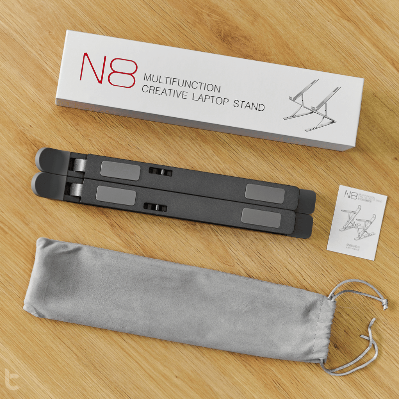 Stand/ Giá Đỡ Nhôm cho MB 2 Tầng N8 một chiếc giá đỡ cân mọi thiết bị với sức chịu lên tới 40kg. Đáp ứng đầy đủ nhu cầu cho một chiếc giá đỡ, ngoài ra chiều cao được cải thiện lên đến 310mm. Nếu như bạn đang phân vân về một chiếc giá đỡ tiện dụng xem ngay phía bên dưới! Giá Đỡ N8 với khả năng tuỳ chỉnh linh hoạt của giá đỡ gấp gọn. Có thể linh hoạt tuỳ chỉnh độ cao theo 9 + 6 cấp độ cùng chiều cao từ 25-310mm. Nhờ đó có thể điều chỉnh góc nhìn, nâng chiều cao theo ý muốn.  Thiết kế 2 tầng Giá Đỡ Nhôm MB 2 Tầng N8 có thể cung cấp 6 + 9 cấp độ điều chỉnh chiều cao, từ 25mm đến 310mm, có thể điều chỉnh góc và chiều cao hoạt động thoải mái theo nhu cầu thực tế của bạn. Thiết kế tiện dụng, dễ dàng xem và gõ, giảm đau cổ, vai và cột sống. Thiết kế công thái học giúp người dùng có dáng ngồi thẳng, chống mỏi lưng, mỏi cổ, hạn chế các bệnh lý về cột sống khi làm việc quá nhiều với máy tính.  Gia công CNC làm bằng hợp kim nhôm, sau khi phun cát và kéo dây. Silicon chống trượt. Mặt dưới và các bộ phận hỗ trợ được làm bằng miếng đệm chống trượt silicon, có thể bảo vệ hiệu quả máy tính xách tay khỏi bị trượt và tránh trầy xước. Khả năng tương thích Giá Đỡ Nhôm MB 2 Tầng N8 có thể tương thích với tất cả các máy tính xách tay từ 10 – 17.3 inch. Ví dụ MB Air / Pro, Dell XPS, HP, ASUS, Lenovo ThinkPad,… Nhỏ gọn và di động Tương thích được hầu hết các dòng MB và Laptop hiện nay nhưng kích thước vô cùng nhỏ gọn khi gập lại Với thiết kế di động có thể gập lại sáng tạo, giá đỡ máy tính xách tay có thể gập lại với kích thước 25 x 290mm và có túi đựng di động, dễ dàng mang theo. Vừa là chân đế nhưng cũng là bộ tản nhiệt Phần đáy được làm rỗng, chân đế này có thể nâng đỡ máy tính nên thiết kế thông minh của nó mang đến một không gian mở thông thoáng giúp laptop không bị quá nóng trong quá trình sử dụng. Khi mua Giá Đỡ Nhôm MB 2 Tầng N8 tại Lucas sẽ được tặng túi nỉ đựng bảo vệ khỏi trầy xước. Dễ dàng mang theo trong balo, túi xách hoặc cầm tay mà không hề tốn nhiều diện tích khi mang đi.