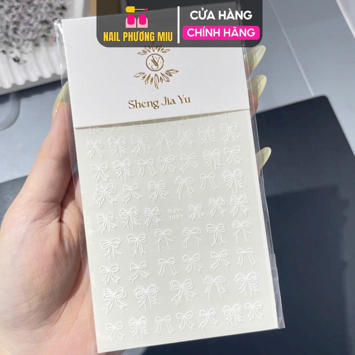 Sticker Nơ Trắng Mix SJY1081 Kiểu Hàn Quốc Dán Móng Siêu Xinh, Hình Dán Móng Nơ Sẵn Keo Siêu Dính Siêu Bền Chuyên Dùng Làm Nail Nữ Women Sticker nơ trắng mix SJY1081 Sheng Jia Yu là phụ kiện nail được thiết kế theo phong cách Hàn Quốc, mang đến vẻ đẹp nhẹ nhàng, tinh tế nhưng không kém phần nổi bật. Với chất liệu mỏng nhẹ, dẻo dai, sản phẩm giúp bạn dễ dàng tạo nên những bộ móng độc đáo, sang trọng mà không mất quá nhiều thời gian và công sức. Đặc biệt, sticker đã có sẵn keo siêu dính giúp việc dán lên móng nhanh chóng, bền lâu mà không cần thêm keo hỗ trợ. Đây là lựa chọn hoàn hảo cho cả người mới bắt đầu và thợ nail chuyên nghiệp. 2. Đặc điểm nổi bật của sticker nơ trắng mix SJY1081 Thiết kế Hàn Quốc nhẹ nhàng, thanh lịch