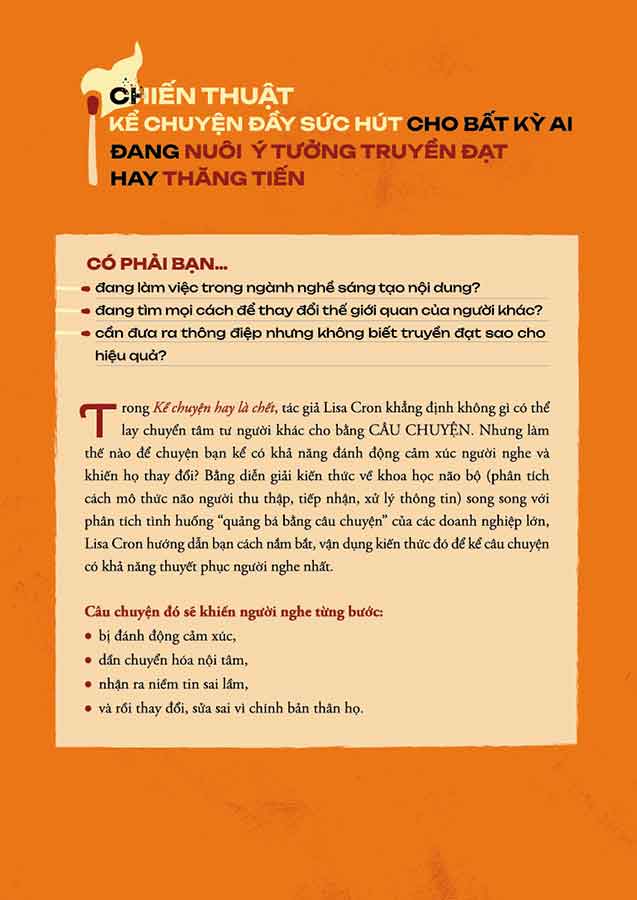 Trong Story Or Die - Kể Chuyện Hay Là Chết, tác giả Lisa Cron khẳng định không gì có thể lay chuyển tâm tư người khác cho bằng CÂU CHUYỆN. Nhưng làm thế nào để chuyện