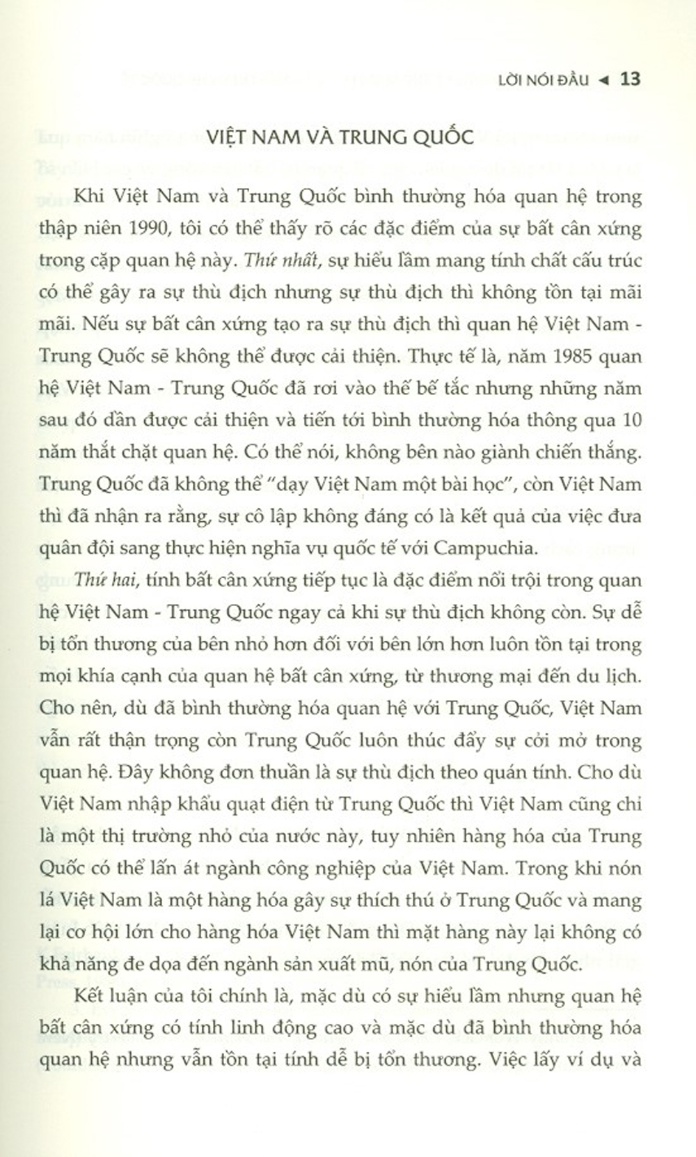Tác giả cho rằng bất cân xứng lại được xây dựng theo một khung lý thuyết mới. Ông cho rằng bất cân xứng là đặc điểm phố biến trong quan hệ quốc tế, là mối quan hệ mà bên nhỏ hơn dễ bị ảnh hưởng hơn trong các tương tác so với bên lớn hơn bởi sự chênh lệch về tiềm lực, nhưng bên lớn hơn cũng không thể đơn phương đặt ra các điều khoản cho mối quan hệ đó.