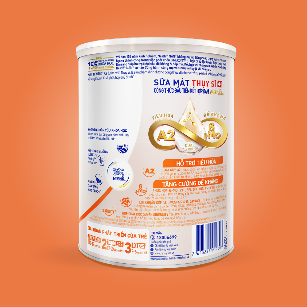 • HỢP CHẤT ĐỘC QUYỀN SINERGITY (6HMO & lợi khuẩn kép B. infantis, B. lactis) được chứng minh lâm sàng giúp hỗ trợ tiêu hóa, đề kháng & hấp thu." Nestlé tin rằng nuôi con bằng sữa mẹ là khởi đầu dinh dưỡng lý tưởng cho trẻ sơ sinh và chúng tôi hoàn toàn ủng hộ khuyến nghị của Tổ chức Y tế Thế giới về việc cho trẻ bú mẹ hoàn toàn trong sáu tháng đầu đời, sau đó là cho trẻ ăn thức ăn bổ sung dinh dưỡng đầy đủ cùng với việc tiếp tục cho trẻ bú mẹ đến hai tuổi hoặc lâu hơn. Chúng tôi cũng nhận thấy rằng việc nuôi con bằng sữa mẹ không phải lúc nào cũng là một lựa chọn khả thi cho các bậc cha mẹ, chúng tôi khuyên bạn nên được tư vấn bởi nhân viên y tế về cách nuôi dưỡng trẻ và thời điểm nên cho ăn thức ăn bổ sung. Nếu bạn quyết định không cho con bú sữa mẹ, hãy nhớ rằng quyết định như vậy có thể khó đảo ngược và sẽ có những ảnh hưởng về mặt xã hội và tài chính. Việc cho trẻ bú bình một phần sẽ làm giảm nguồn cung cấp sữa mẹ. Sữa công thức dành cho trẻ sơ sinh phải luôn được pha chế, sử dụng và bảo quản theo hướng dẫn trên nhãn để tránh rủi ro cho sức khỏe của trẻ. Không bảo quản sản phẩm quá lâu với môi trường nhiệt độ cao. Phải sử dụng trong vòng 4 tuần sau khi mở hộp. Sản phẩm chính hãng được nhập khẩu và phân phối bởi Công ty TNHH Nestlé Việt Nam.