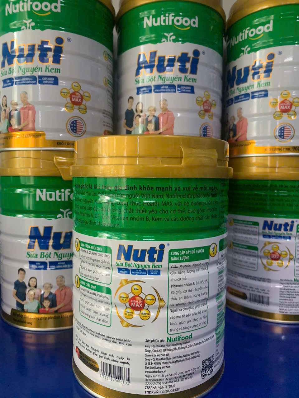Sữa bột nguyên kem Nutifood với công thức độc quyền Health MAX cải tiến mới với hệ dưỡng chất cân bằng hoàn hảo cung cấp đầy đủ dưỡng chất thiết yếu cho cơ thể phát triển toàn diện bao gồm Protein, Canxi, Vitamin A, Vitamin D, Vitamin nhóm B, Kẽm. Sữa bột nguyên kem Nuti phù hợp với mọi người, người lớn, người cao tuổi, người già yếu suy kiệt, người suy dinh dưỡng, trẻ em từ 1 tuổi trở lên, thanh thiếu niên.