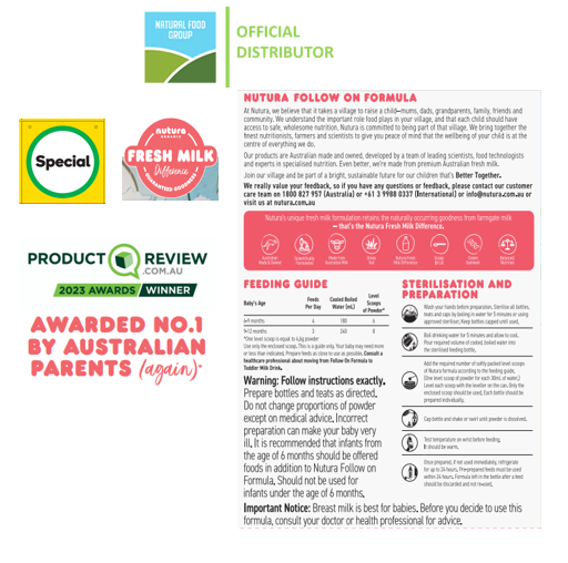 4. Bảo quản: Sau khi mở, đóng nắp hộp kín và sử dụng trong vòng 4 tuần. Bột sữa có thể bị lắng. Không sử dụng nếu hộp, niêm phong an toàn trên nắp hoặc giấy bạc bị hỏng.