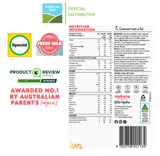 4. Bảo quản: Sau khi mở, đóng nắp hộp kín và sử dụng trong vòng 4 tuần. Bột sữa có thể bị lắng. Không sử dụng nếu hộp, niêm phong an toàn trên nắp hoặc giấy bạc bị hỏng.