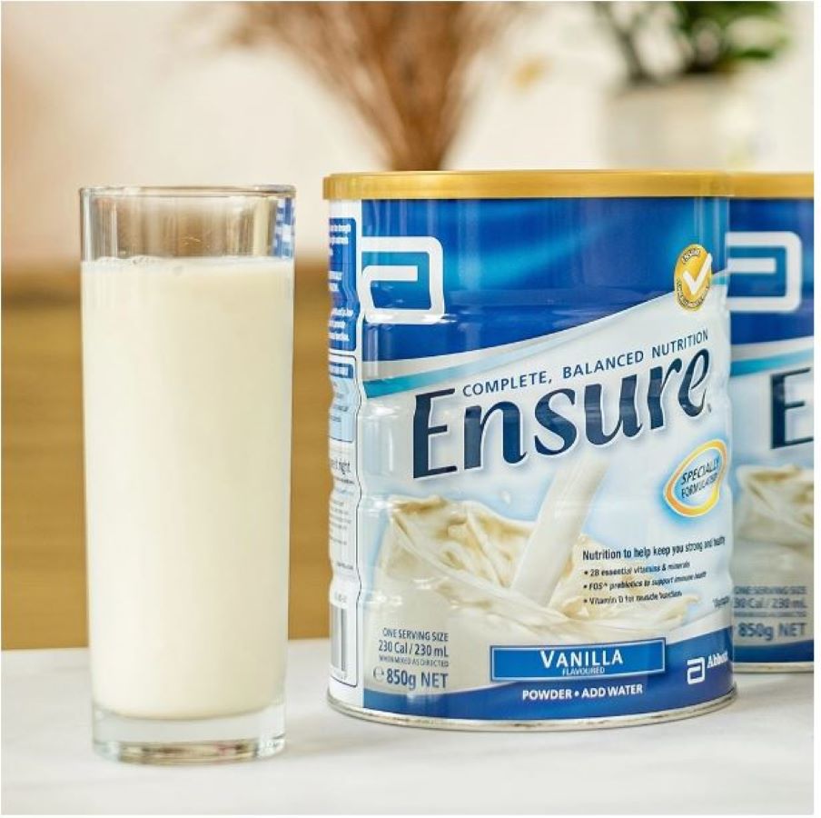 - Bổ sung một chế dinh dưỡng hợp lý cho người trung niên, người cao tuổi, người cần bổ sung dinh dưỡng. Đối tượng sử dụng: Sữa Ensure thích hợp cho người lớn và trẻ trên 10 tuổi, đặc biệt cho bệnh nhân cần hồi phục nhanh và những người ăn uống kém. Hướng dẫn sử dụng: Uống trực tiếp Đôi nét về thương hiệu Ensure là một trong những thương hiệu sữa dinh dưỡng nổi tiếng hàng đầu thế giới, được thành lập và sở hữu bởi tập đoàn dinh dưỡng danh tiếng Abbott Hoa Kỳ. Với hơn 45 năm không ngừng nghiên cứu và phát triển, Ensure rất được Abbott tập trung đầu tư nghiên cứu, mang đến giải pháp chăm sóc sức khỏe toàn diện, toàn cầu, phục vụ sức khỏe con người bằng các kỹ thuật hiện đại nhất. Bao bì thay đổi theo từng đợt nhập hàng