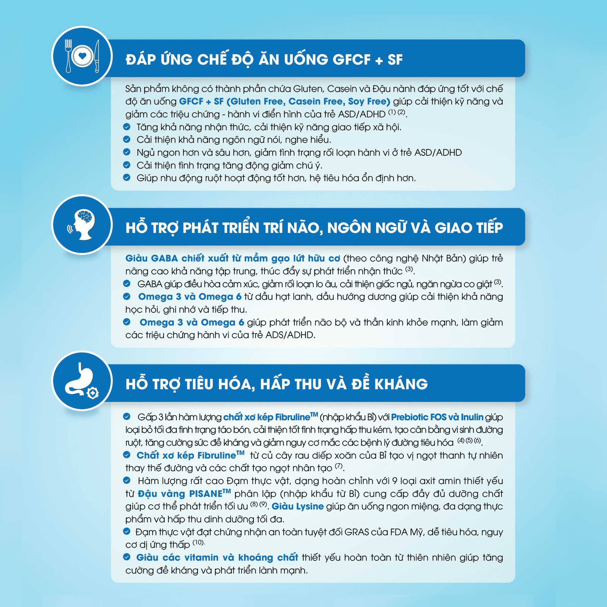 - Hàm lượng GABA cao gấp 10 lần so với sữa gạo thông thường từ mầm gạo lứt hữu cơ giúp trẻ ngủ ngon hơn, tăng cường khả năng chú ý và kích thích cơ thể sản sinh hormone tăng trưởng.