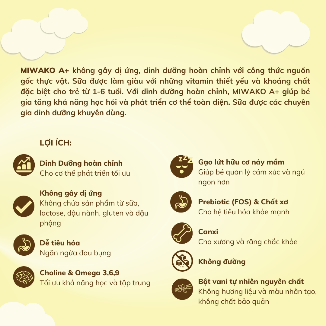 - Miwako là dòng sữa hạt hữu cơ dành cho các bé phát triển trí não & chiều cao