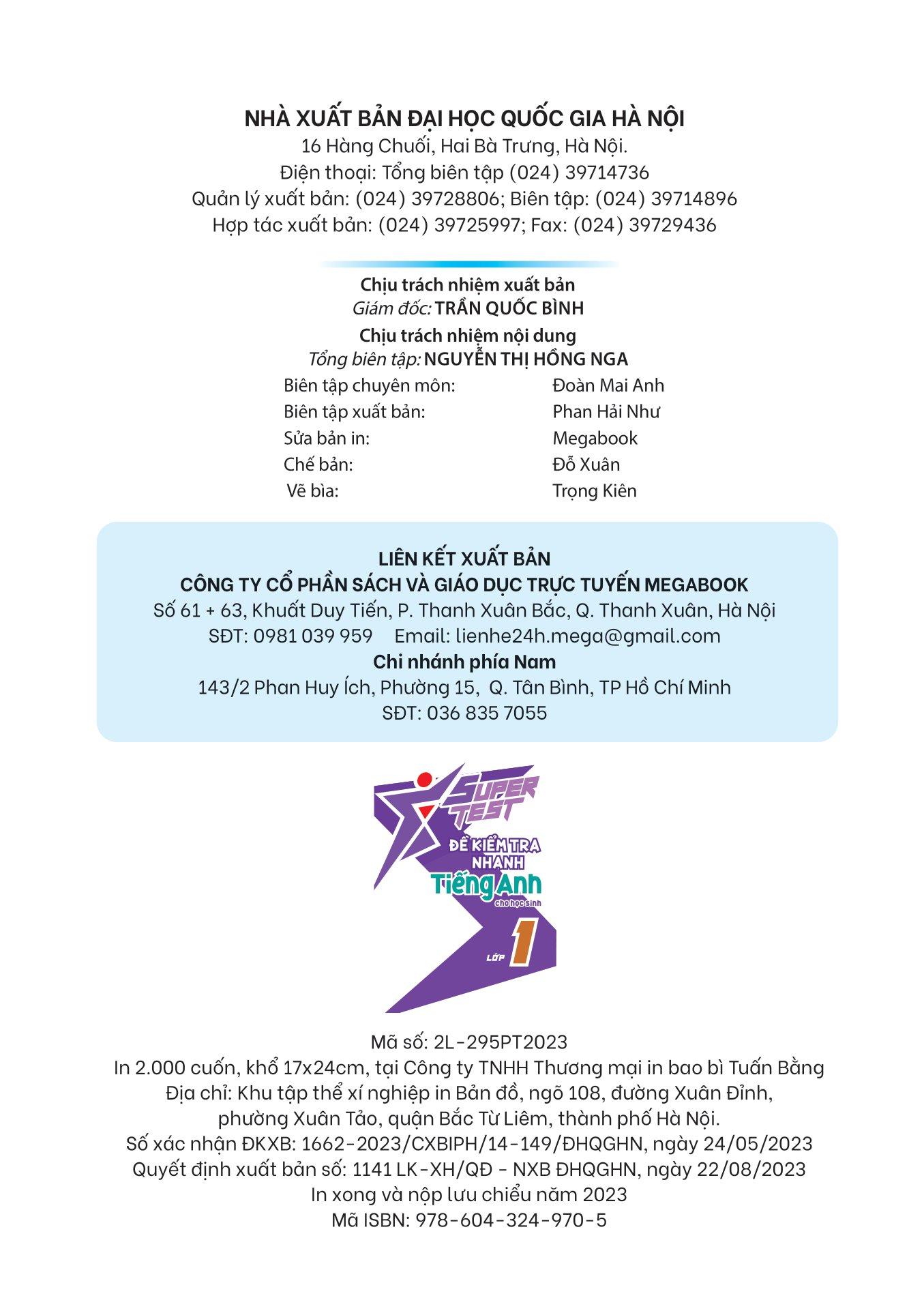Với Bộ sách Super Test – Đề kiểm tra nhanh Tiếng Anh cho học sinh, bố mẹ sẽ giúp con tiến bộ từng ngày, tự tin với khả năng ngôn ngữ của m.ình khi ôn luyện Tiếng Anh bởi các bài tập về 4 kỹ năng: Nghe – Nói – Đọc – Viết được liên kết với nhau theo logic của bài học.
