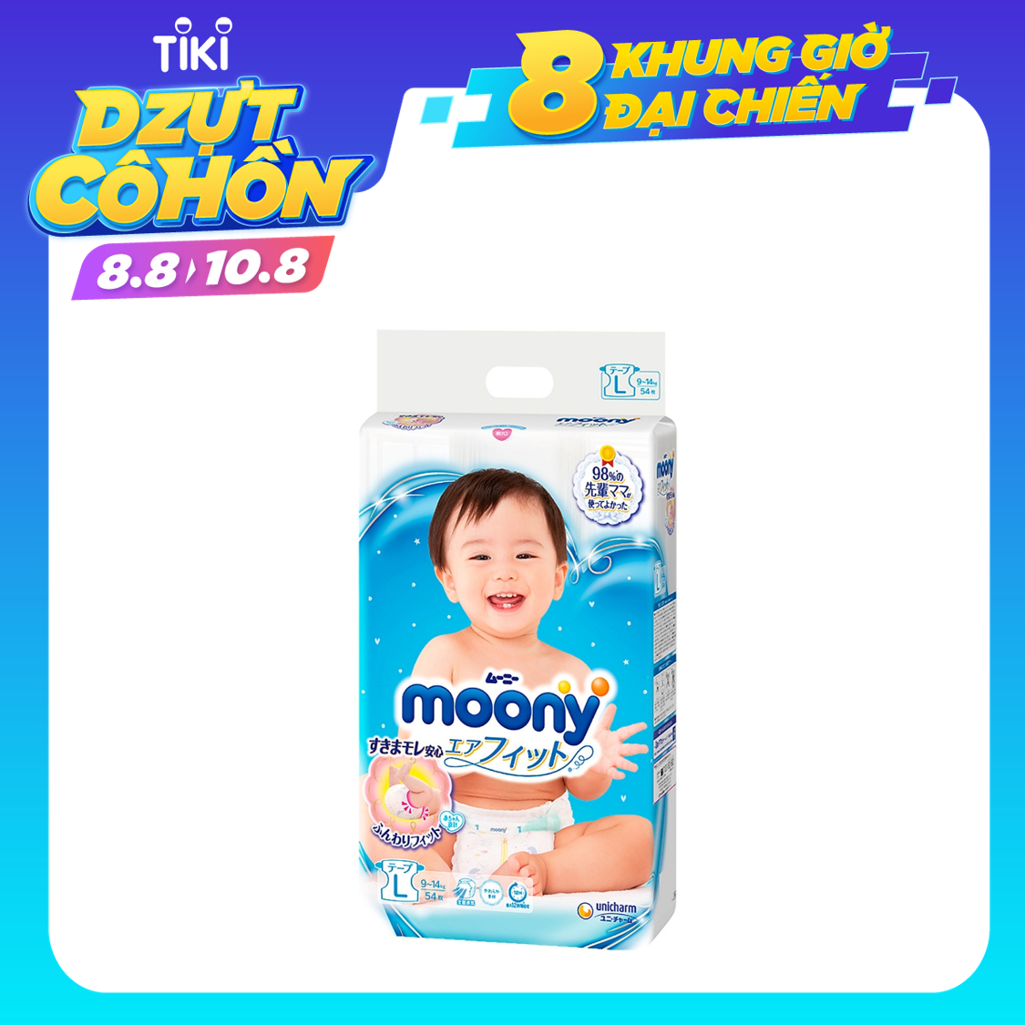 Tã Dán Moony Size L54 Miếng là sản phẩm cao cấp được sản xuất theo công nghệ hiện đại nhất hiện nay, đáp ứng được tất cả những yêu cầu về chất lượng cũng như tiêu chuẩn về an toàn cho bé yêu của bạn. Thấu hiểu sự khác biệt trong cấu tạo về sống lưng của các bé sơ sinh không thẳng như người lớn mà thường có độ cong như hình dạng chữ C từ phần lưng xuống mông do ảnh hưởng từ tư thế khi bé còn trong bụng mẹ, do đó Moony đã "phát minh" ra một đặc điểm nổi bật mà chưa tã nào có, đó chính là hệ thun đũng mặt ngoài tã - tạo ra một độ cong tự nhiên ôm theo cấu tạo cơ thể sơ sinh của bé, hạn chế việc tạo ra khe trống mà vẫn rất thoải mái cho bé các bé sơ sinh. Sản phẩm có size L cho bé 9 - 14 kg.