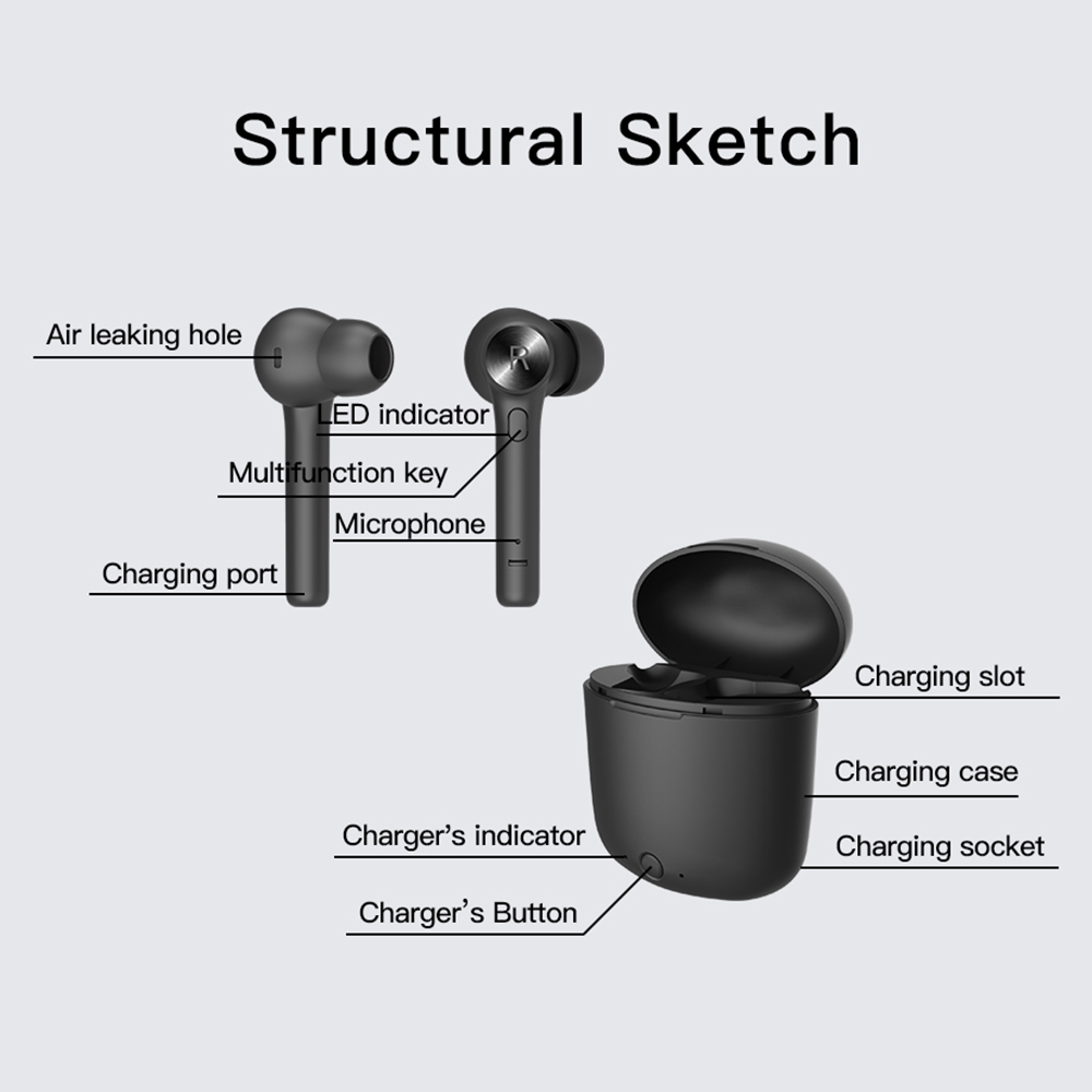 Wireless dual ear design, left and right ear channel separation. You can use the headset solely, or used them in pairs.