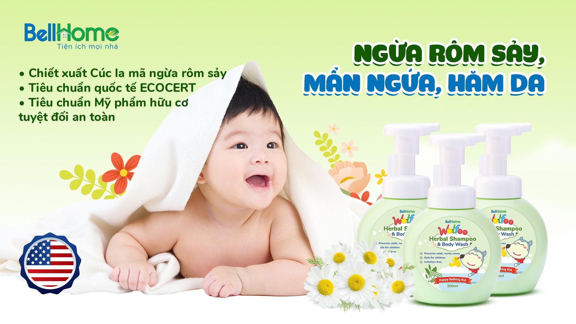 Tắm Gội Thảo Dược Chống Cảm WOLFOO BABY Bell Home Dành Cho Bé Yêu