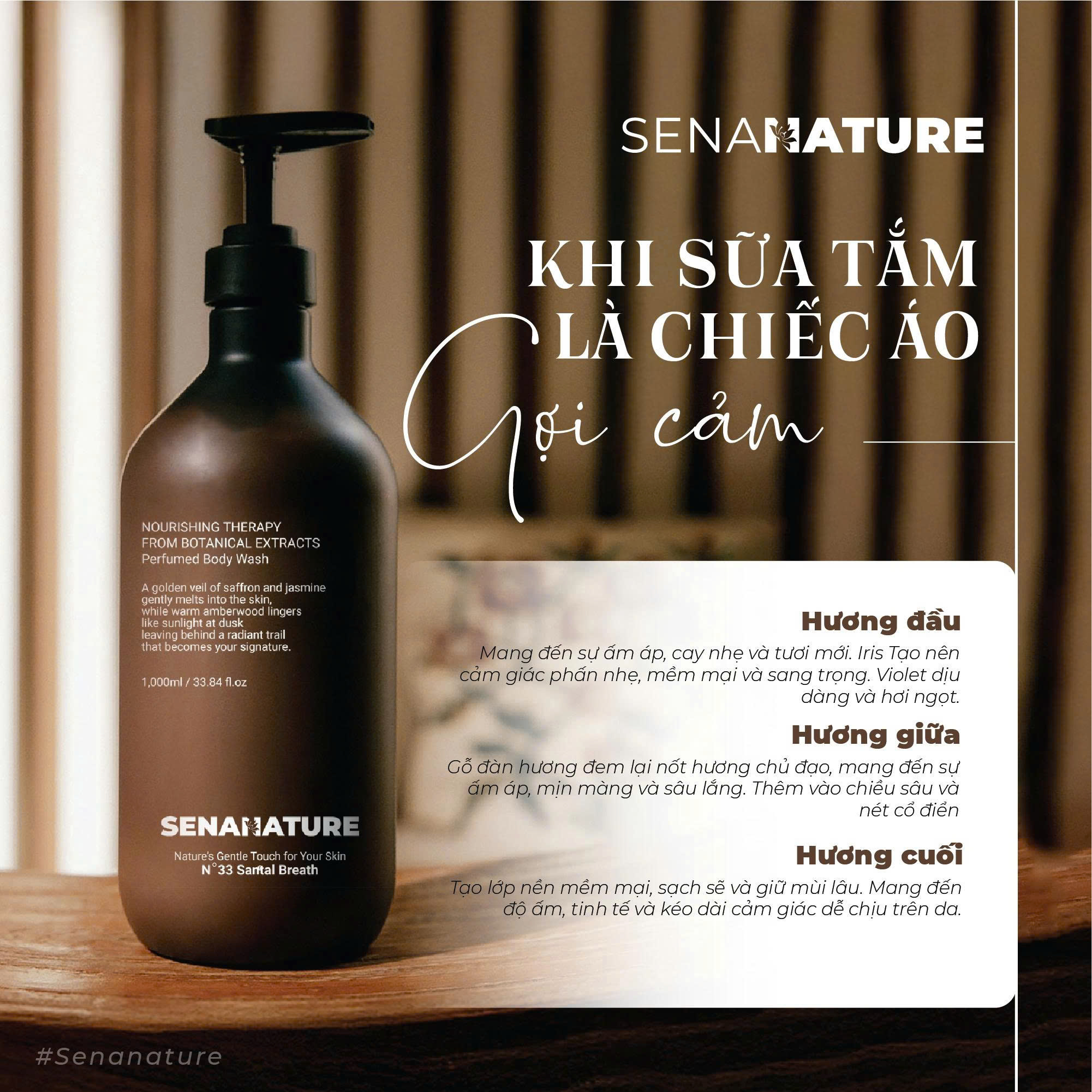 Xài sữa tắm bình thường Xài sữa tắm nước hoa Từ ngày có #SENANATURE N°33 Santal Breath, mình bỏ luôn bước xịt nước hoa Mùi gỗ trầm và nhài trắng sang trọng Chiết xuất thực vật an toàn lành tính tuyệt đối trên da Lưu hương bền bỉ lên tới 12h Được sản xuất tại 1 trong 4 nhà máy hàng đầu Hàn Quốc Làm sạch sâu nhưng vẫn dưỡng ẩm cho da luôn mềm mịn Tắm mà thơm xịn vậy, không thử hơi bị phí á