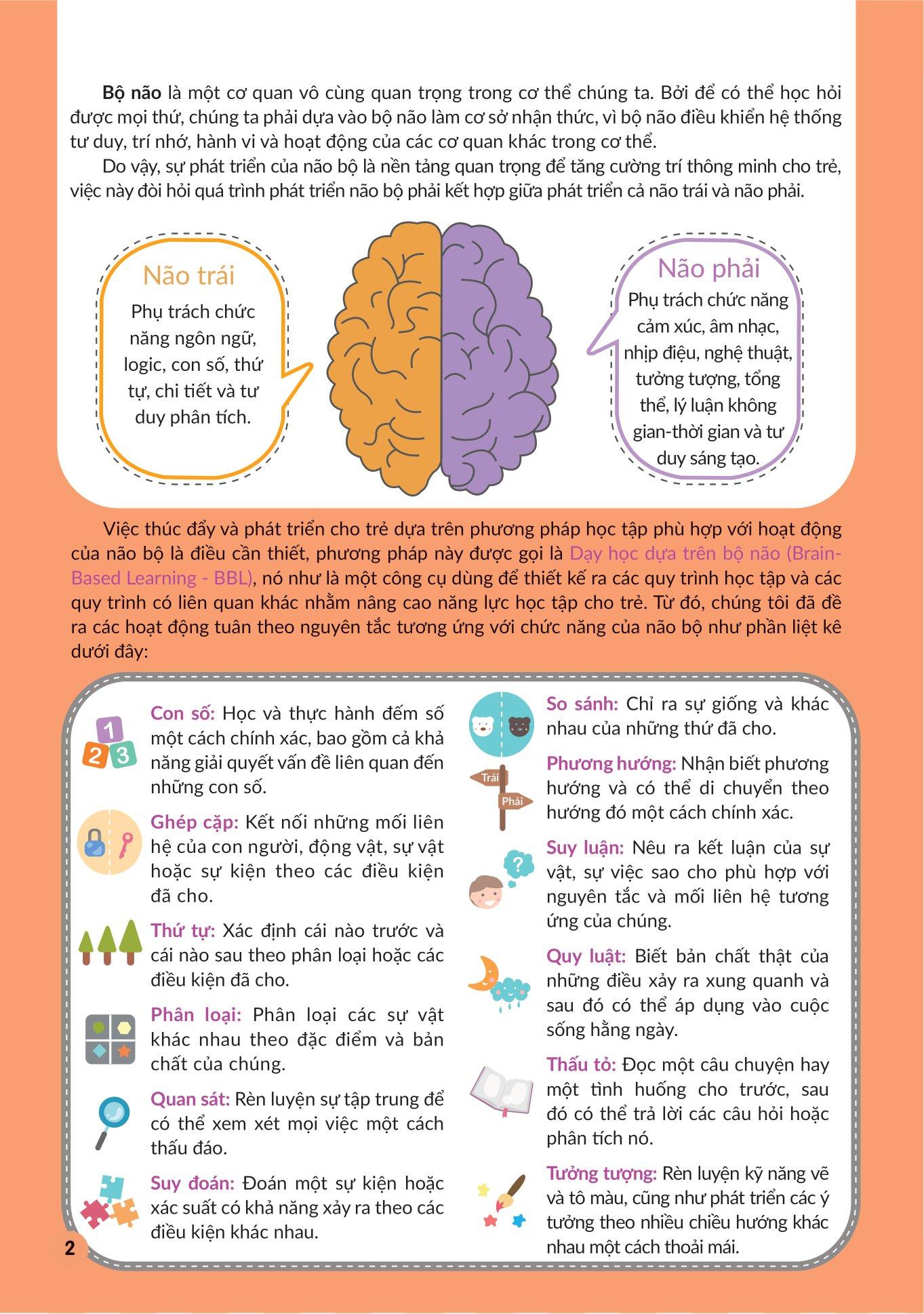 - Gần 150 bài thực hành giúp các em rèn luyện tư duy phân tích, tư duy sáng tạo, tư duy không để tăng cường tối đa não bộ.