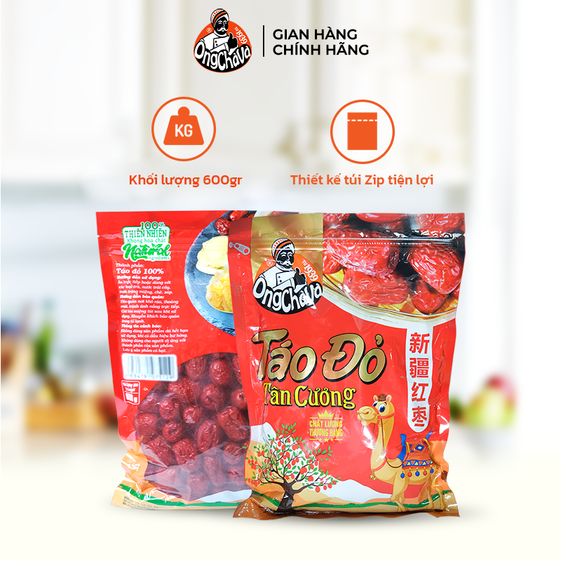 ÁO ĐỎ TÂN CƯƠNG 600G – MỀM DẺO NGỌT THANH, DƯỠNG CHẤT TỪ VÙNG NẮNG GIÓ TÂN CƯƠNG   Được trồng tại vùng khí hậu ôn đới khô, ngày nắng đêm lạnh, Táo Đỏ Tân Cương Thượng Hạng Ông Chà Và kết tinh từ điều kiện tự nhiên lý tưởng, tạo nên những trái táo to, thịt dày, mềm dẻo, vị ngọt thanh hậu dịu, hoàn toàn không hóa chất, không chất bảo quản. Sau thu hoạch, táo được phơi nắng tự nhiên, giữ trọn giá trị dinh dưỡng và hương vị thơm đặc trưng. Đây là lựa chọn tuyệt hảo cho sức khỏe, làm đẹp, tăng sức đề kháng và bồi bổ tự nhiên mỗi ngày. LÝ DO NÊN CHỌN TÁO ĐỎ TÂN CƯƠNG ÔNG CHÀ VÀ Nguồn gốc  tự nhiên – không hóa chất Táo loại thượng hạng: trái to, thịt dày, mềm dẻo, ngọt dịu Quy trình phơi nắng truyền thống – không sấy công nghiệp Giàu dưỡng chất: vitamin, sắt, chất chống oxy hóa, tốt cho máu và tiêu hóa Vị ngọt thanh, không gắt – dễ ăn, phù hợp cho mọi độ tuổi Dễ bảo quản, tiện sử dụng – ăn trực tiếp hoặc dùng trong nhiều món bổ dưỡng Ứng dụng đa dạng: ăn vặt, chưng yến, nấu chè, ngâm mật ong, nấu canh bồi bổ   THÀNH PHẦN CHÍNH Táo đỏ Tân Cương nguyên chất – không phụ gia, không đường hóa học, không chất bảo quản.   HƯỚNG DẪN SỬ DỤNG Ăn trực tiếp: Dùng như món ăn nhẹ bổ dưỡng hằng ngày Hầm chè, chưng yến: Tăng độ ngọt thanh tự nhiên và giá trị dinh dưỡng Ngâm mật ong hoặc rượu: Tốt cho tuần hoàn máu và sắc đẹp Nấu canh gà, súp thuốc Bắc: Giúp bồi bổ cơ thể, tăng sức đề kháng Lưu ý: Bảo quản nơi khô ráo, thoáng mát. Tránh nơi ẩm ướt hoặc ánh nắng trực tiếp Hạn sử dụng: In rõ trên bao bì   THÔNG TIN CHĂM SÓC KHÁCH HÀNG Nếu bạn có bất kỳ thắc mắc nào về sản phẩm hoặc cần hỗ trợ, vui lòng nhấn vào CHAT NOW để được phục vụ nhanh chóng và tận tình.   ÔNG CHÀ VÀ – GIA VỊ TRUYỀN THỐNG TỪ 1939