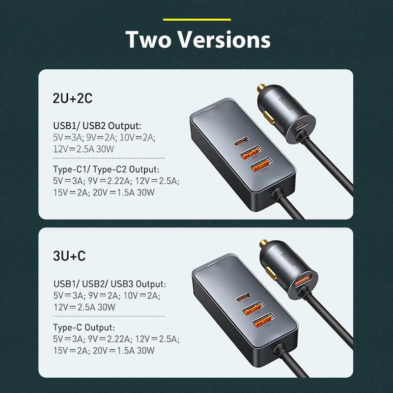 Tính năng cơ bản bộ Tẩu sạc nhanh mở rộng 4 Port dùng cho xe hơi Baseus Share Together Extention Car Charger 120W