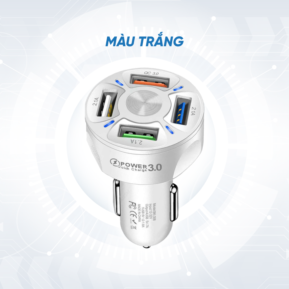Tẩu Sạc Xe Ô Tô 4 Cổng USB Công Nghệ Sạc Nhanh QC 3.0A THÔNG TIN SẢN PHẨM:
