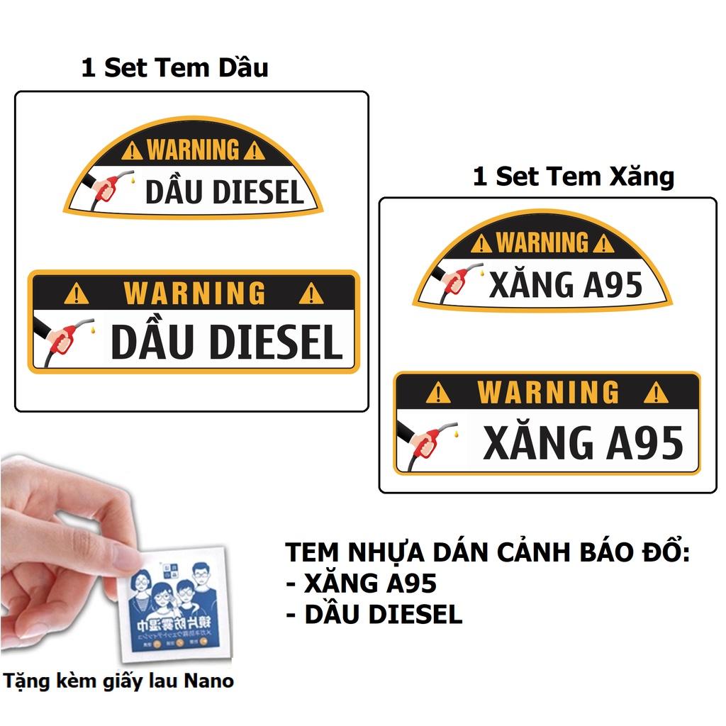 Tem Nhựa Dán Cảnh Báo Đổ Xăng A95 - Đổ Dầu Diesel Cho Xe Ôtô, An Toàn, Tiện Dụng Khi Đổ Xăng, Tránh Nhầm Lẫn. Tem Nhựa dán cảnh báo giúp phân biệt xe chạy xăng A95, chạy dầu Diesel, khả năng chống nhầm lẫn cực cao.