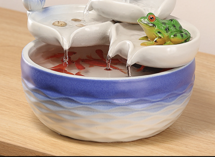 ✨Thác nước phong thủy Bạch Liên Vũ Oa bằng gốm sứ thủ công- Arthouse