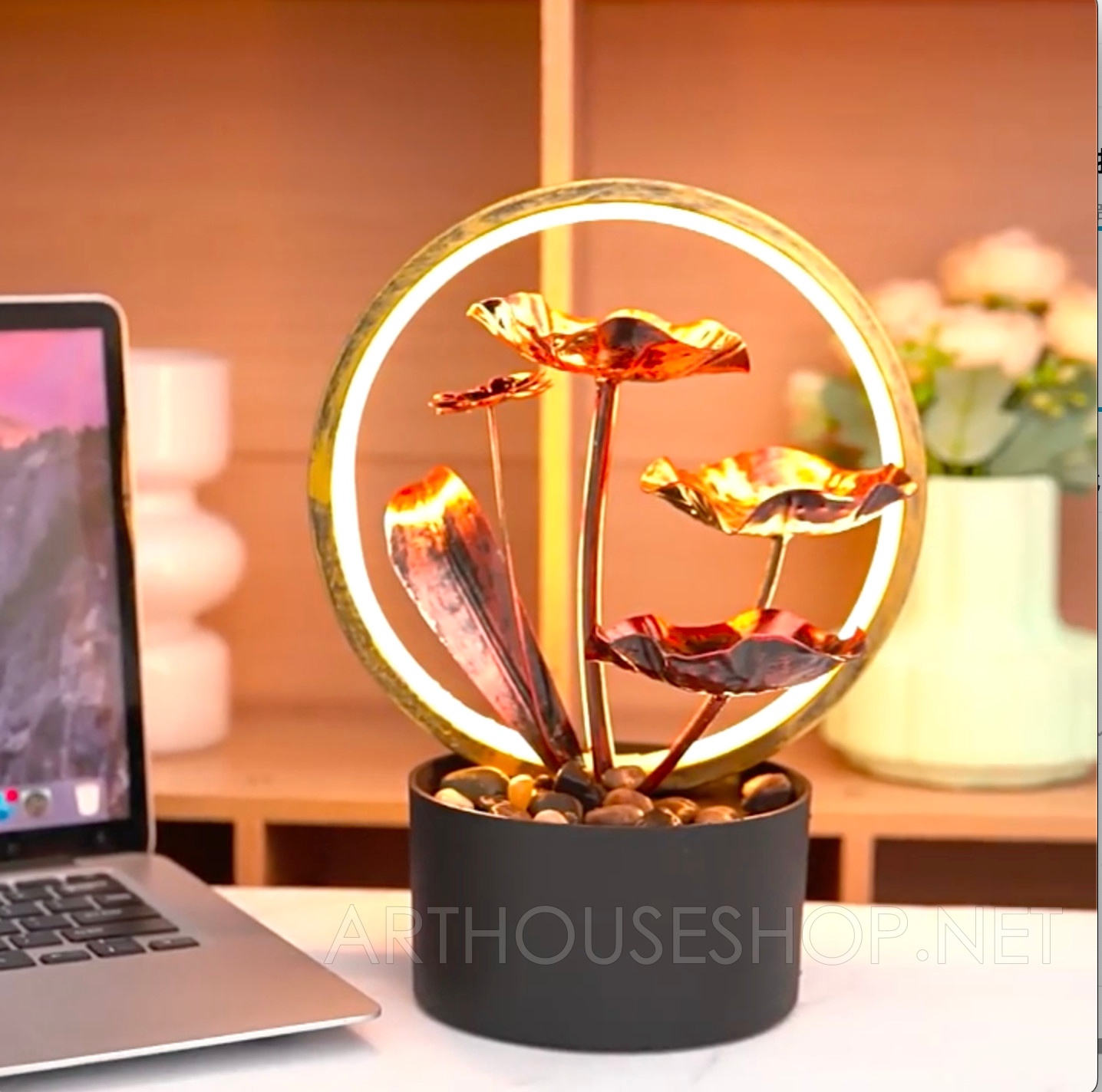 Trong phong thuỷ, hoa sen vàng là biểu tượng cho sự may mắn, bình an với tác dụng thu hút vượng khí, tăng cường các vận tốt, đồng thời giúp bảo vệ chủ nhân và các thành viên trong gia đình khỏi những tai vận xấu hay hạn chế sự chống phá của kẻ thù địch.  Các chuyên gia phong thuỷ nhận định: việc trưng bày các vật phẩm mang hình ảnh của hoa sen vàng mang ý nghĩa đặc biệt, đem đến sự thanh thịnh, trang trọng cho không gian nhà ở hay nơi thờ tự cũng như các tác dụng tích cực về phong thuỷ. Thác nước sen giúp  điều hoà vượng khí, thu hút các nguồn năng lượng tốt, tăng vận may giúp gia chủ tĩnh tâm và an lạc trong tâm hồn Thác thiết kế vòng đèn vàng ấm áp. Tạo cảm giác nhẹ nhàng, tinh tế và sang trọng Gói sản phẩm : 1 thác nước + Máy bơm dùng điện ( không bao gồm các phụ kiện khác) Kích thước : Chiều cao 29cm x Chiều rộng 22 cm x sâu 14cm Chất liệu : Nhựa + Kim loại VẬN CHUYỂN ĐÓNG GÓI ️ Sản phẩm được đóng gói cẩn thận ️ An toàn khi vận chuyển. ️Sản phẩm cam kết như miêu tả ️Chất lượng được kiểm tra ️Vận chuyển nhanh = Hỏa tốc ️Chúng tôi chuyên vật phẩm trang trí quà tặng chất lượng cao sỉ và lẻ số lượng lớn Lưu ý:  Do sự khác biệt về cài đặt ánh sáng và màn hình, màu sắc của các sản phẩm có thể hơi khác so với hình ảnh. Vui lòng cho phép sự khác biệt kích thước nhỏ do đo lường( 1-2cm) thủ công khác nhau. Âm thanh trong video không phải là âm thanh thực tế.