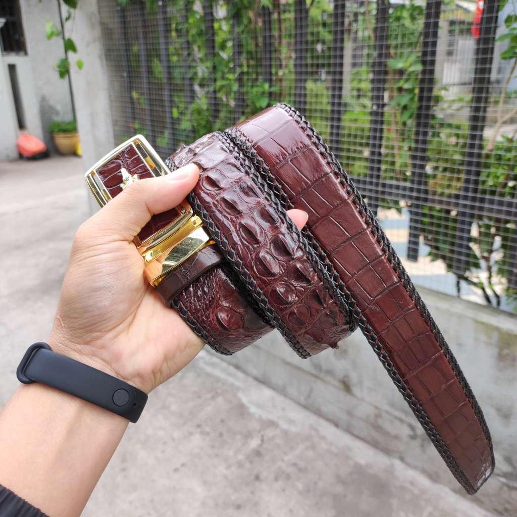 ✨Thắt lưng da cá sấu nam đan viền thủ công rất đẹp! N53N_V (mặt vàng)